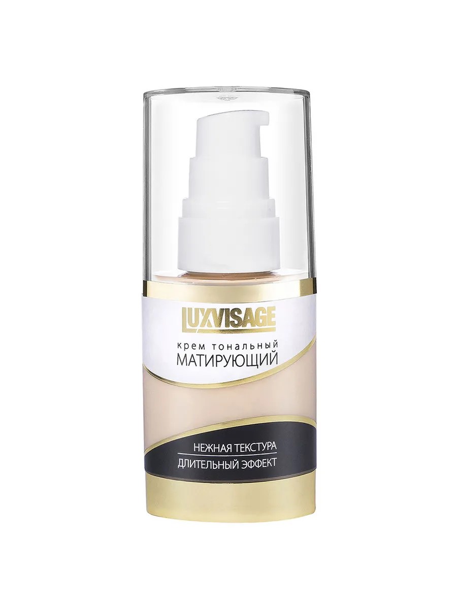 LuxVisage is a beige foundation with medium coverage that evens out skin tone, conceals minor skin imperfections (redness, enlarged pores), and creates a natural matte finish.