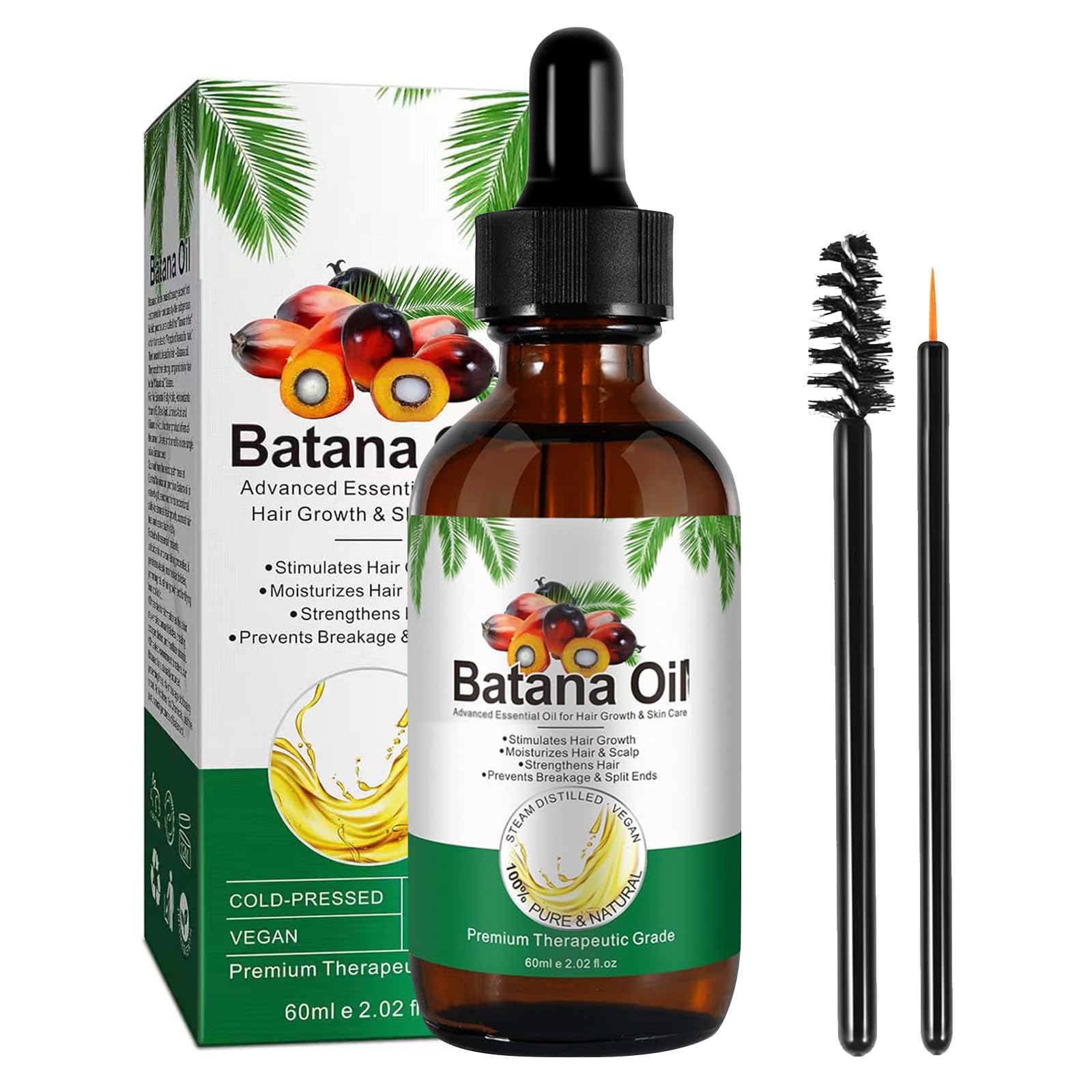 Warnings: For external use only. Instructions for use: 1st Wash your hair. 2nd Apply an appropriate amount of conditioner to your hair and scalp and wait for a while. 3rd Rinse it clean. 4th After drying, apply an appropriate amount of Batana oil evenly to your hair. : 100 pure and crude Batana oil for hair growth is a natural, nutritious oil from Honduras. It supports hair health and nourishes the scalp. Thanks to its rich supply of essential fatty acids and antioxidants, it strengthens the hair, reduces hair breakage and improves overall hair density. It is ideal for repairing damage and restoring moisture to dry or brittle hair as it is deep and moisturizing. Make it your hair mask or leave-in treatment to enhance the natural shine and vitality of your hair. SAFETY WARNING Pregnant women and children should follow medical adviceFor all hair types – easy to use: dry, damaged or normal – our Batana oil is suitable for all hair. Simply apply after washing your hair and enjoy natural beauty. Repairs damaged hair: the natural content of antioxidants and fatty acids in batana oil can repair damaged hair well and reduce split ends and hair breakage. At the same time, batana oil has natural sun protection properties, which can protect hair and scalp from UV rays to some extent. Care and Moisturize: Pure natural batana oil can deeply moisturize the hair, nourish the hair and moisturize the hair. Prevents hair drying and breakage and makes hair smoother and shinier. Product contains: 1 x Batana hair oil, contents: 60 ml. Perfect set, suitable for all hair types, used to promote hair growth, improve hair quality and make your hair fuller and thicker. 100 pure and natural: The natural batana oil is extracted using traditional cold pressing processes and serves for the long-term preservation of all valuable active ingredients. The result is a supply of biological power to hair and scalp. During the cold pressing process, the natural properties and nutrients of the oil are retained, creating a pure and effective product.Batana olie voor haar, 60 ml, 100 pure natuurlijke Batana-olie tegen haaruitval, biologische haarolie voor groei en reparatie van droog, beschadigd haar Waarschuwingen: Alleen voor uitwendig gebruik. Gebruiksaanwijzing: 1ste Was je haar. 2de Breng een geschikte hoeveelheid conditioner aan op je haar en hoofdhuid en wacht even lang. 3de Spoel het schoon uit. 4de Breng na het drogen een geschikte hoeveelheid Batana-olie gelijkmatig aan op je haar. : 100 pure en ruwe Batana-olie voor haargroei is een natuurlijke, voedzame olie uit Honduras. Het ondersteunt de gezondheid van het haar en verzorgt de hoofdhuid. Dankzij de rijke toevoer met essentiële vetzuren en antioxidanten versterkt het het haar, vermindert haarbreuk en verbetert de algemene haardichtheid. Het is ideaal voor het herstellen van schade en het herstel van het vocht van droog of broos haar, omdat het diep en hydraterend is. Maak het tot je haarmasker of leave-in-kuur, en versterk zo de natuurlijke glans en vitaliteit van je haar. VEILIGHEIDSWAARSCHUWING Zwangere vrouwen en kinderen moeten het medisch advies volgenVoor alle haartypes – eenvoudig in gebruik: droog, beschadigd of normaal – onze Batana-olie is geschikt voor elk haar. Gewoon na het wassen van het haar aanbrengen en genieten van natuurlijke schoonheid. Repareert beschadigd haar: door het natuurlijke gehalte aan antioxidanten en vetzuren in de batana-olie kan het beschadigd haar goed repareren en gespleten haarpunten en haarbreuk verminderen. Tegelijkertijd heeft batana-olie natuurlijke zonwerende eigenschappen, die haar en hoofdhuid tot op zekere hoogte tegen uv-straling kunnen beschermen. Verzorging en hydrateren: pure natuurlijke batana-olie kan het haar diep hydrateren, het haar voeden en het haar hydrateren. Voorkomt uitdrogen en breken van het haar en maakt het haar gladder en glanzender. Product bevat: 1 x Batana-haarolie, inhoud: 60 ml. Perfecte set, geschikt voor alle haartypes, wordt gebruikt om de haargroei te bevorderen, de haarkwaliteit te verbeteren en je haar voller en dikker te maken. 100 zuiver en natuurlijk: de natuurlijke batana-olie wordt met behulp van traditionele koude persprocessen gewonnen en dient voor het langdurig behoud van alle waardevolle werkzame stoffen. Het resultaat is een toevoer van haar en hoofdhuid met biologische kracht. Tijdens het koude persproces blijven de natuurlijke eigenschappen en voedingsstoffen van de olie behouden, zodat een zuiver en effectief product ontstaat.