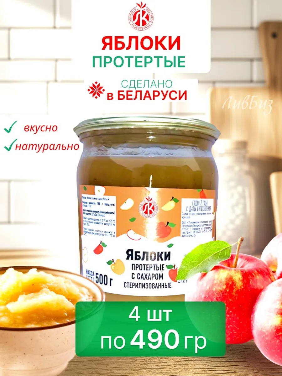 Ляховичский консервный завод Яблоки протертые натуральные с сахаром 4 банки по 500гр.