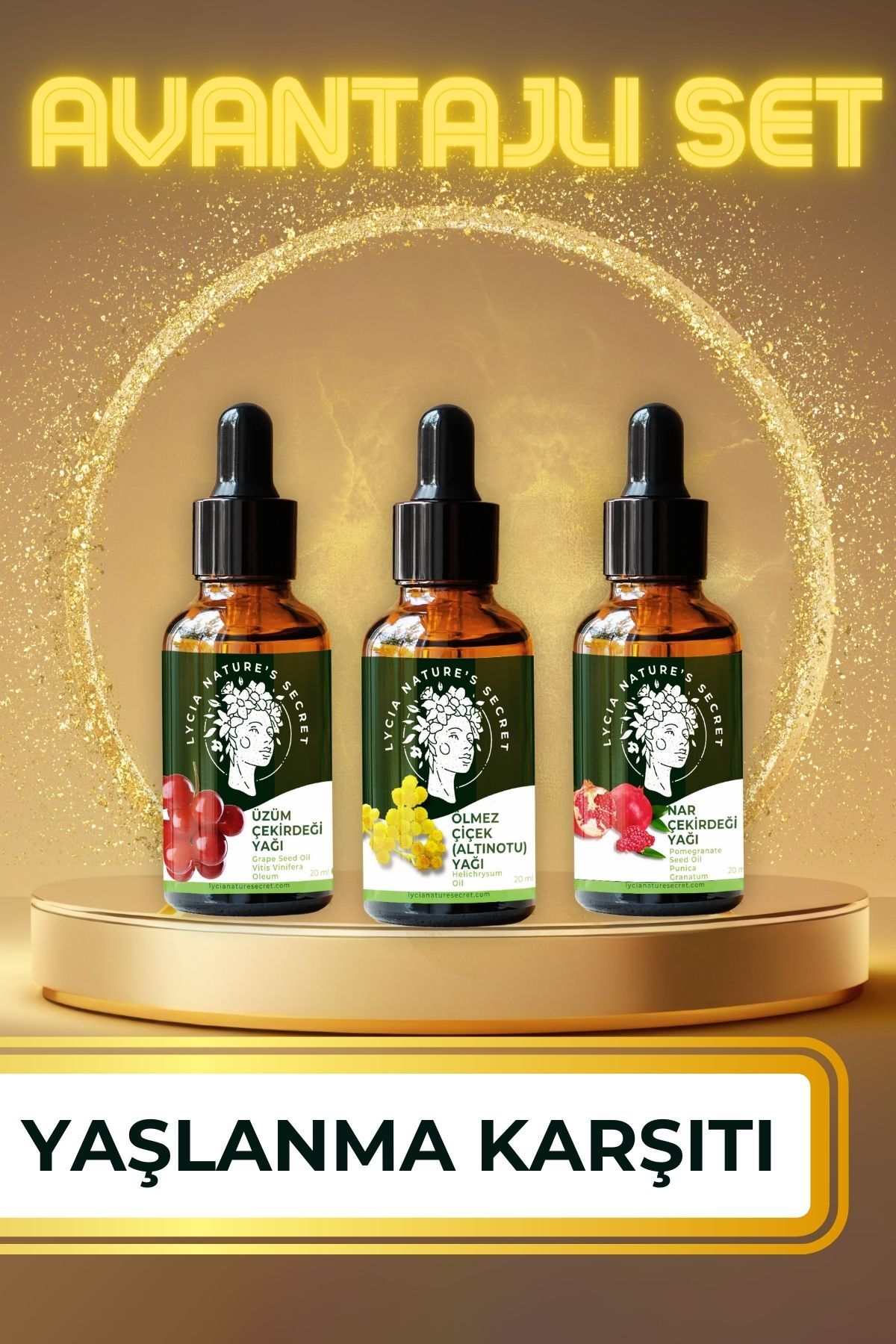 LYC A NATURES SECRET Anti-Aging and Anti-Wrinkle Oil Care Set (GRAPE SEED POMEGRANATE SEED OLIVE)