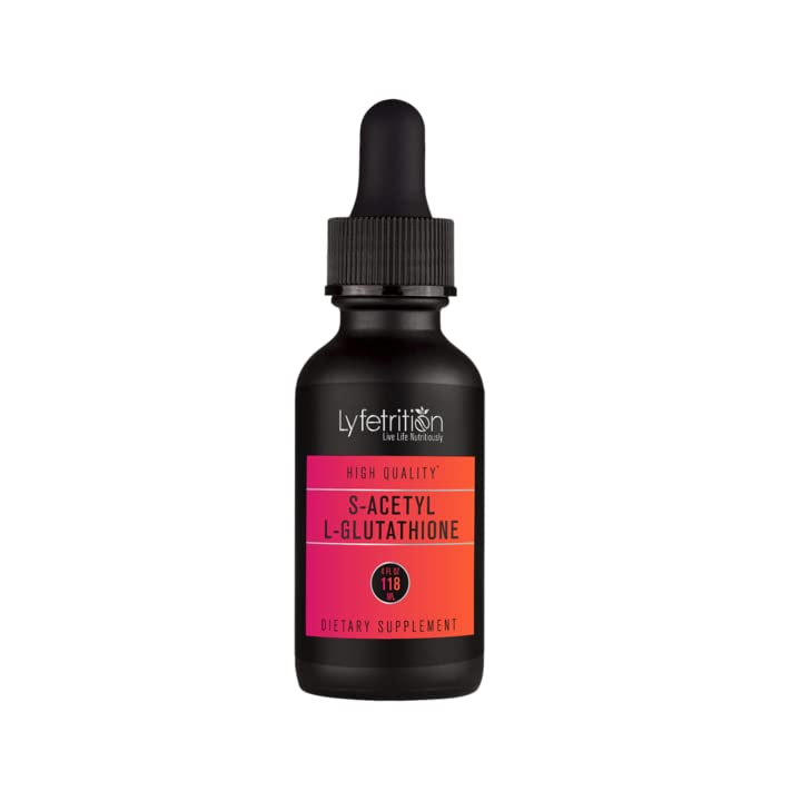 Lyfetrition S-Acetyl L-Glutathione 98mg 4 Oz Liquid 220 Servings Made in USA Quick Absorption Quality Potent Ingredients Third-Party Tested Non-GMO GMP Certified Cruelty-Free Products