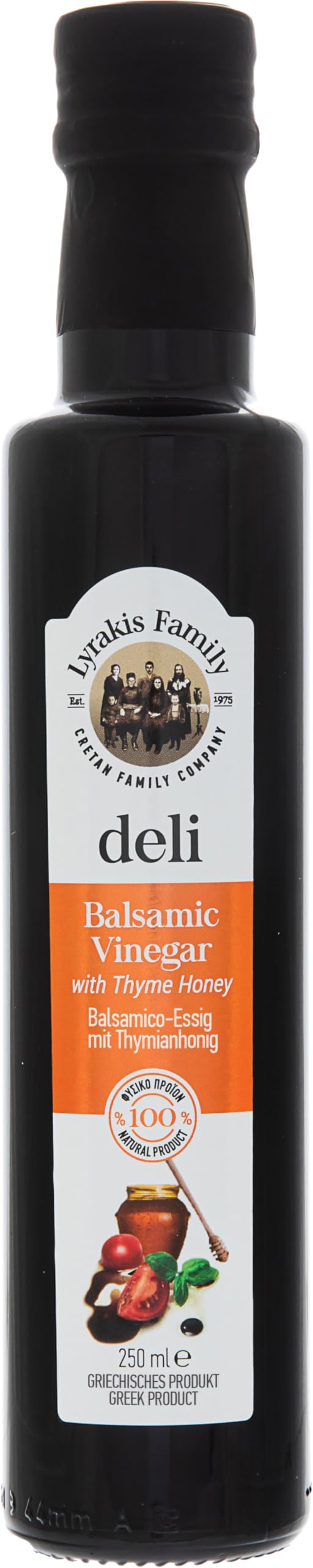 Lyrakis Family Sinds 1975 Kretenzische Balsamico Azijn met tijm Rohhoning – 250 ml glazen fles natuurlijk Balsamic met tijmhoning 250 ml (1er Pack)