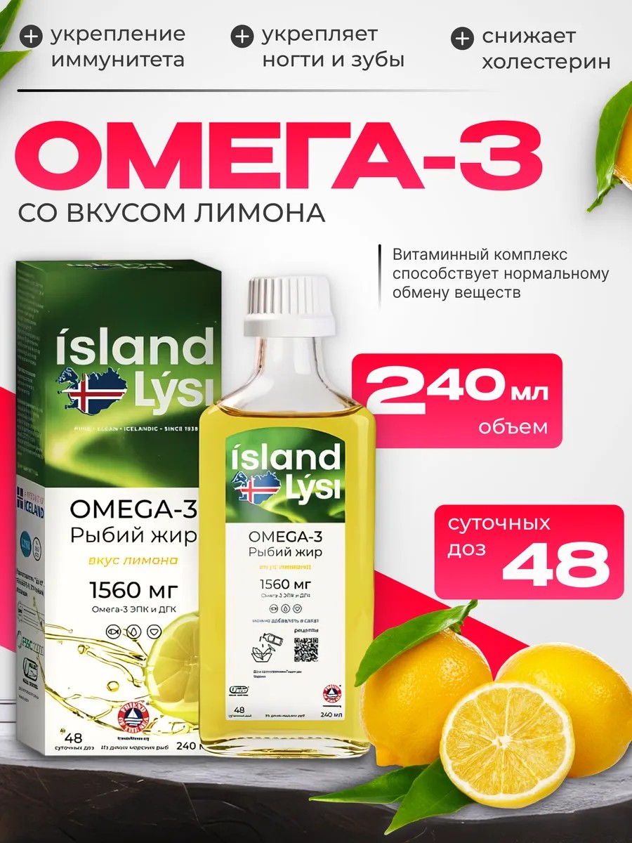| Полное наименование товара | биологически активная добавка к пище "Lysi Омега-3 Рыбий жир со вкусом лимона (Lysi Omega-3 Lemon) (жидкость во флаконах 240 мл), "Lysi HF", Fiskislod 5-9, 101 Reykjavik |