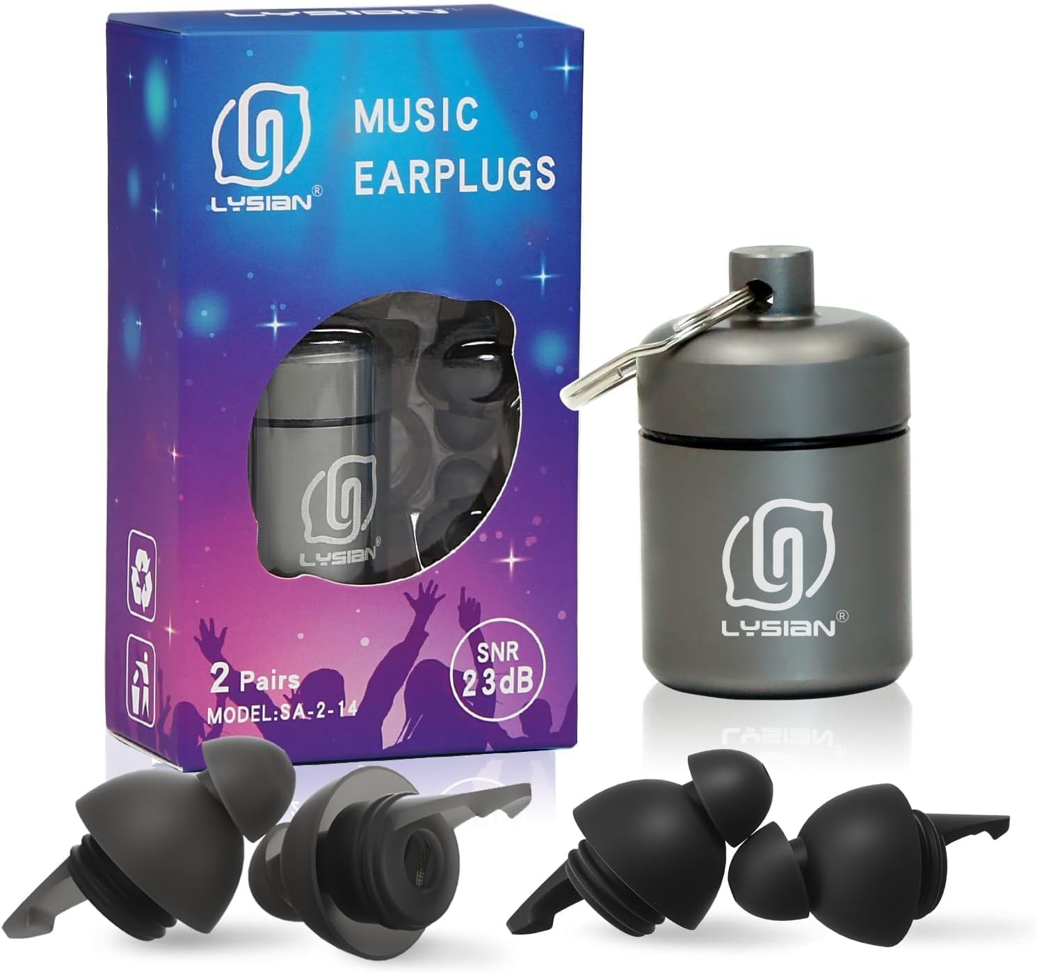 LYSIAN High Fidelity Concert Ear Plugs for Music Reusable-2 Pairs - Black