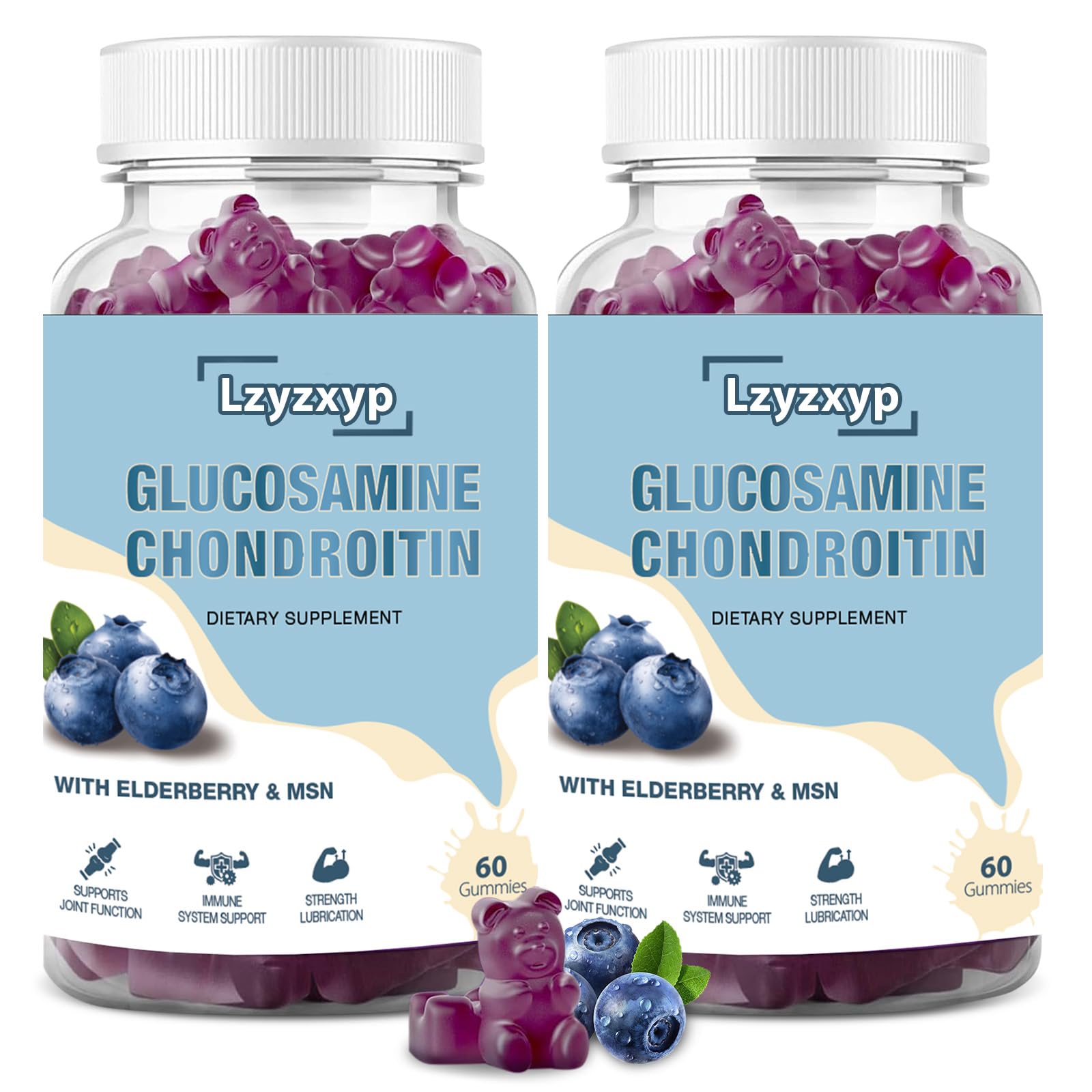Lzyzxyp 2Packs 3000mg Glucosamine Chondroitin Gummies with MSM & Elderberry - Extra Strength Antioxidant Immune Support Supplement Joint Health Flexibility for Adults Men & Women 120Cts (2)