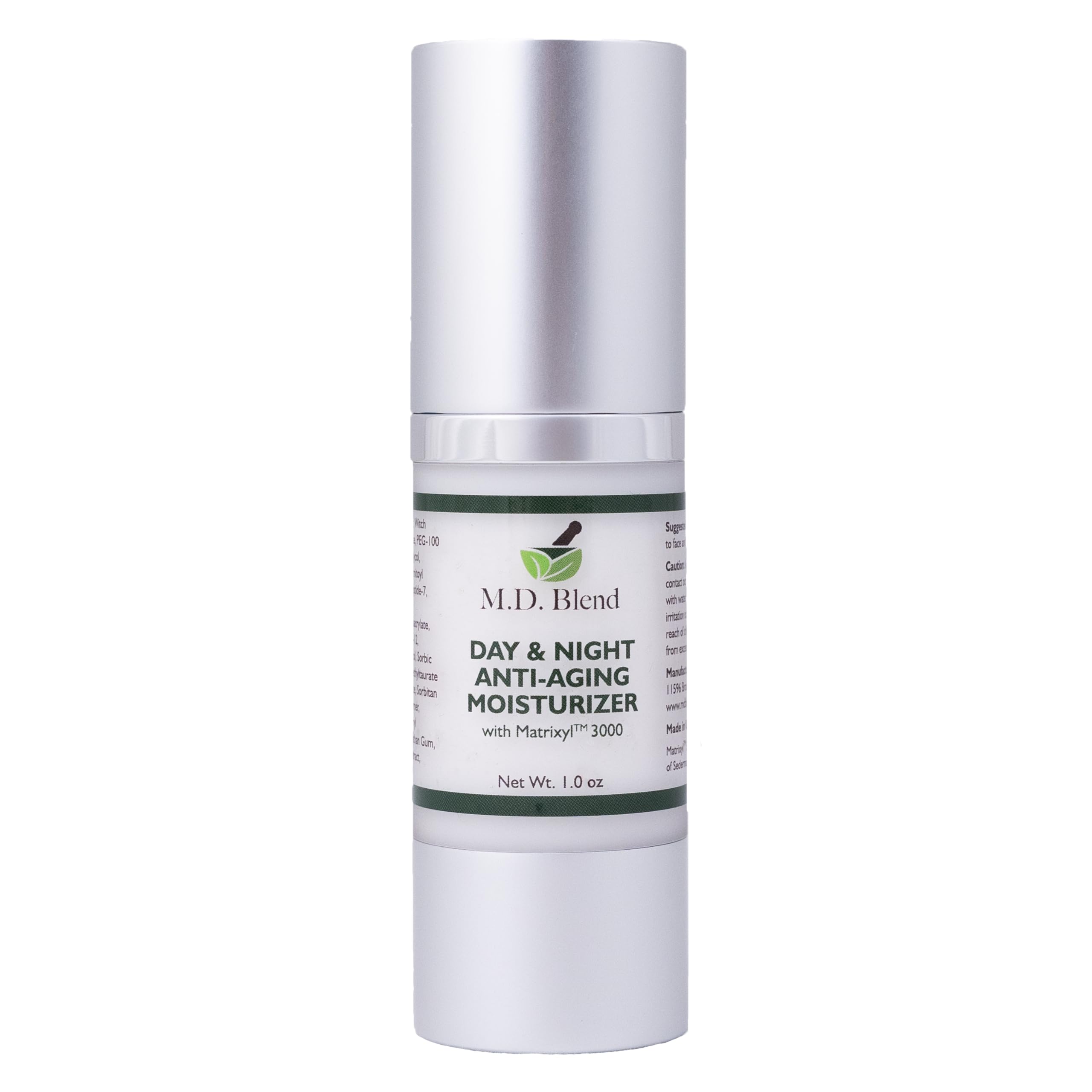 M.D. Blend Day & Night Anti-Aging Face Moisturizer Cream Matrixyl 3000 Nourishing & Hydrating for Women's & Men's Face Moisturizer Night Cream Smooths Lines & Stretch Marks 30 ml Airless Pump 1 Oz