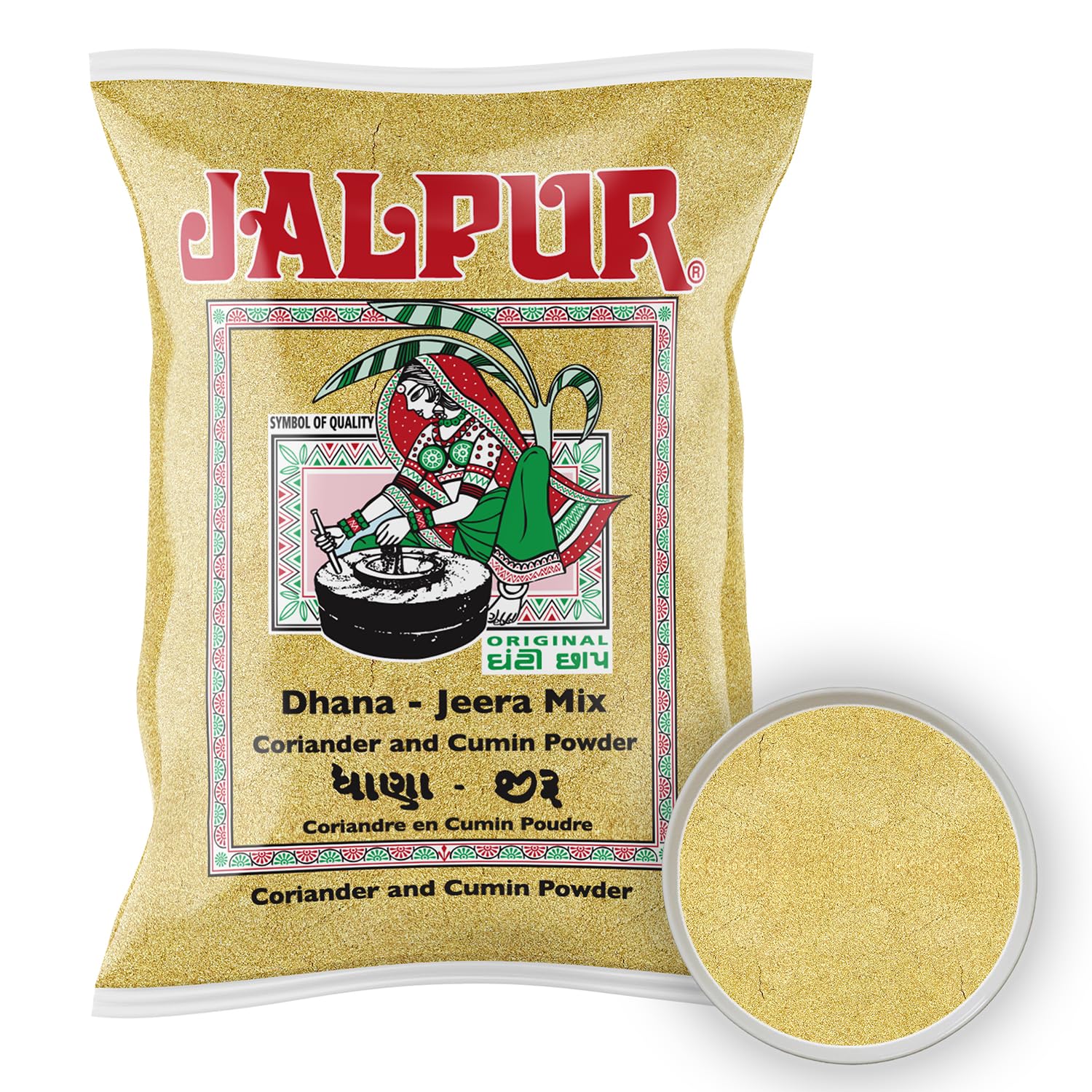 : Packaged on the day of dispatch to preserve freshness. - - - Jalpur Brand Product - - - - Ground Coriander and Cumin Blend - - - - Used in Indian cuisine and in many curry recipes - - - - This blend is made from fresh coriander and ground cumin seeds - - - - 500g Bag - - - PLEASE SEE BELOW FOR ENGLISH TITLE AND DESCRIPTION - Coriander Cumin Powder (Dhana-Jeera) 500g ------------------------- Jalpur Coriander and Cumin Powder. Allergen Advice (Jalpur products are packed and produced in a mill that handles wheat, gluten, nuts, peanuts, mustard, sesame, and soy) - All products will be shipped from the UK. Ingredients: Coriander and Cumin Seeds