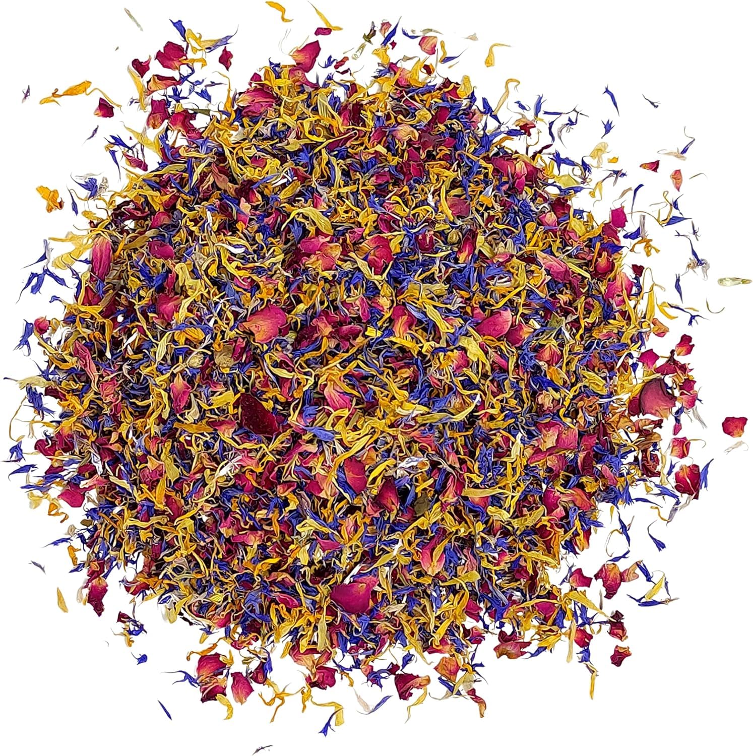 NatureGrail offers a high-quality blend of red rose petals, blue cornflower petals, and yellow orange marigold petals. Edible, food-grade, made in Germany. 100 pure, vegan. All natural, raw, and caffeine-free ingredients. Ingredients: Edible Rose, Cornflower, and Marigold. Instructions: Gently sprinkle the flower blend over salads, cream cheese, dips, butter, salad dressings, and desserts. You can also brew the flowers into a tea or use them directly as an edible garnish. Be sure not to use more than the recommended amount for food use. See more