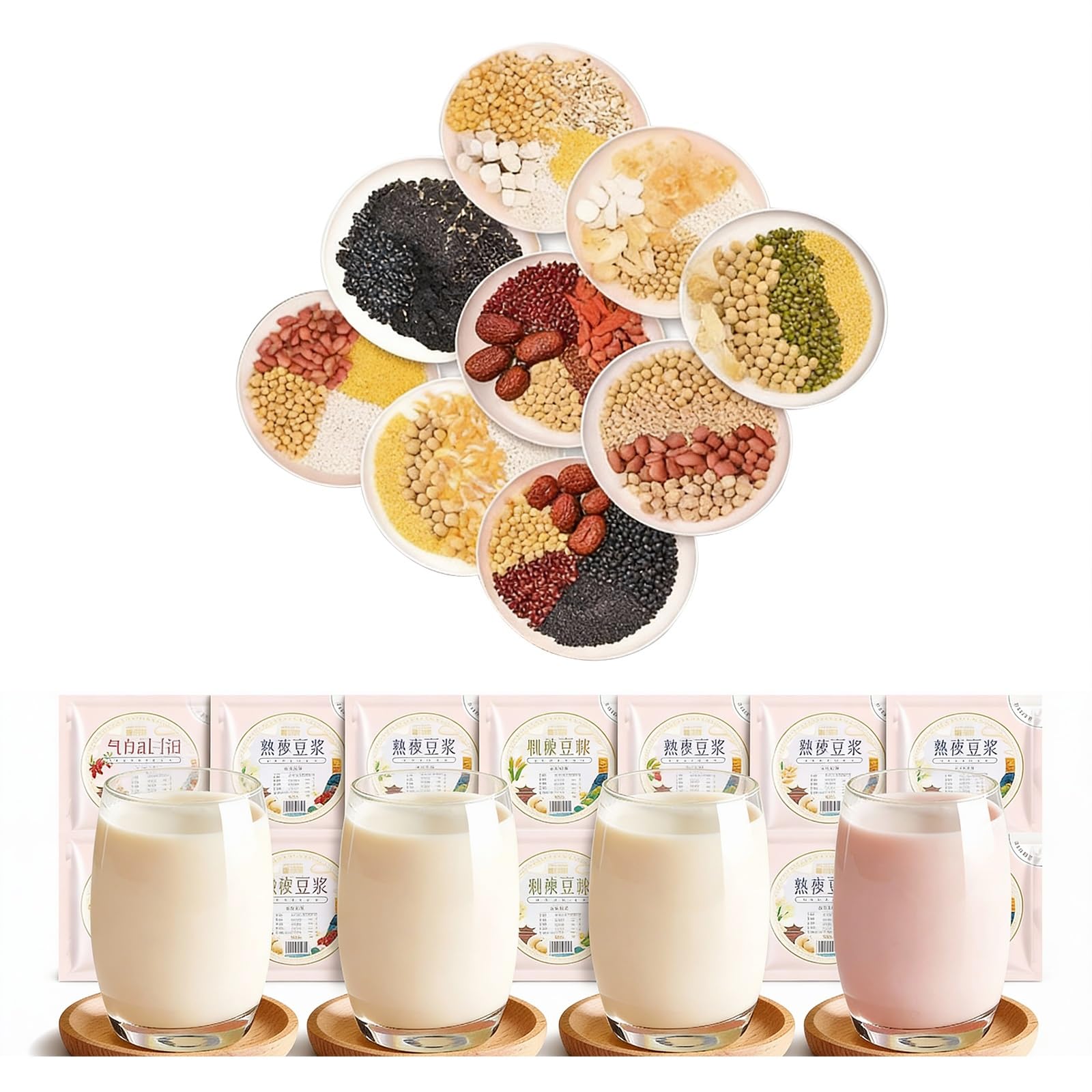Mélange De Lait De Soja Multigrains, 70g X 10 Paquets, 10 Saveurs For Mélangeurs, Ingrédients De Petit Déjeuner Riches En Nutriments, Kit De Céréales For Smoothie En Vrac