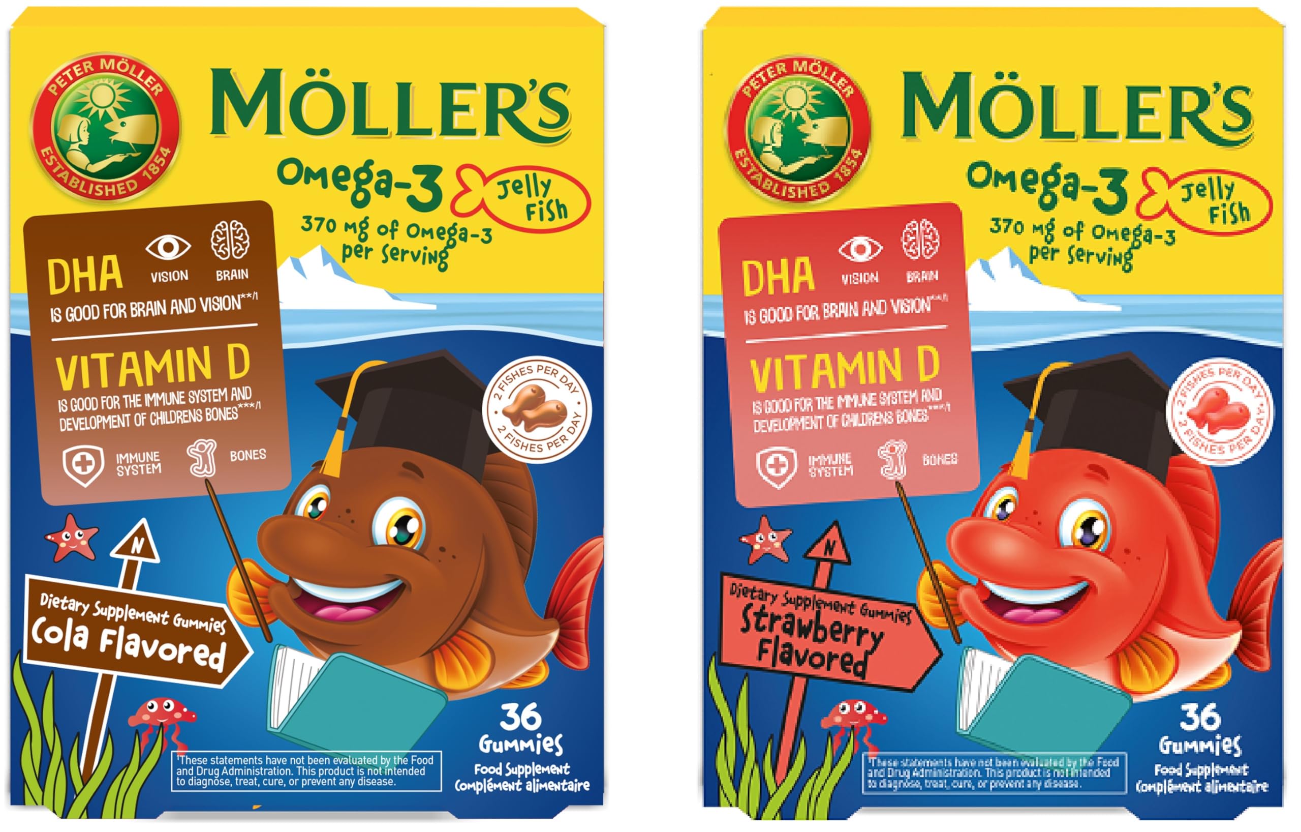 166 YEARS OF EXPERIENCE IN SCANDINAVIA - Möller's is a Norwegian brand that has been a leader in the production of Omega-3 fish oil since 1854. This makes Möller's one of the oldest and biggest producers of supplements in Scandinavia. Through years of experience and constant modernisation, Möller's has been able to achieve the highest quality and purity, allowing you to feel safe and healthy. IMPORTANT – Omega-3 fatty acids are a part of the essential nutrients that the body can't produce itself. Therefore, they have to be consumed through food or dietary supplement, which is made easier with Möller's Omega-3 supplements. EASY TO CHEW AND SWALLOW – Due to their smooth and soft texture, Möller's Omega-3 Jelly Fish taste great and are easy to chew and swallow. Natural aroma and no sugar added. Give them to the kids with breakfast or add two treats to their lunch box. VITAMINS – Essential DHA and EPA fatty acids support the development and maintenance of vision, brain and heart functions. Möller's contains vitamins and minerals like vitamin D. D vitamins are important building blocks to maintain a healthy immune system. FOR CHILDREN AND ADULTS – Möller's Omega-3 Jelly Fish meet Omega-3 needs. The Nordic fish oil jellies do not contain added sugar.