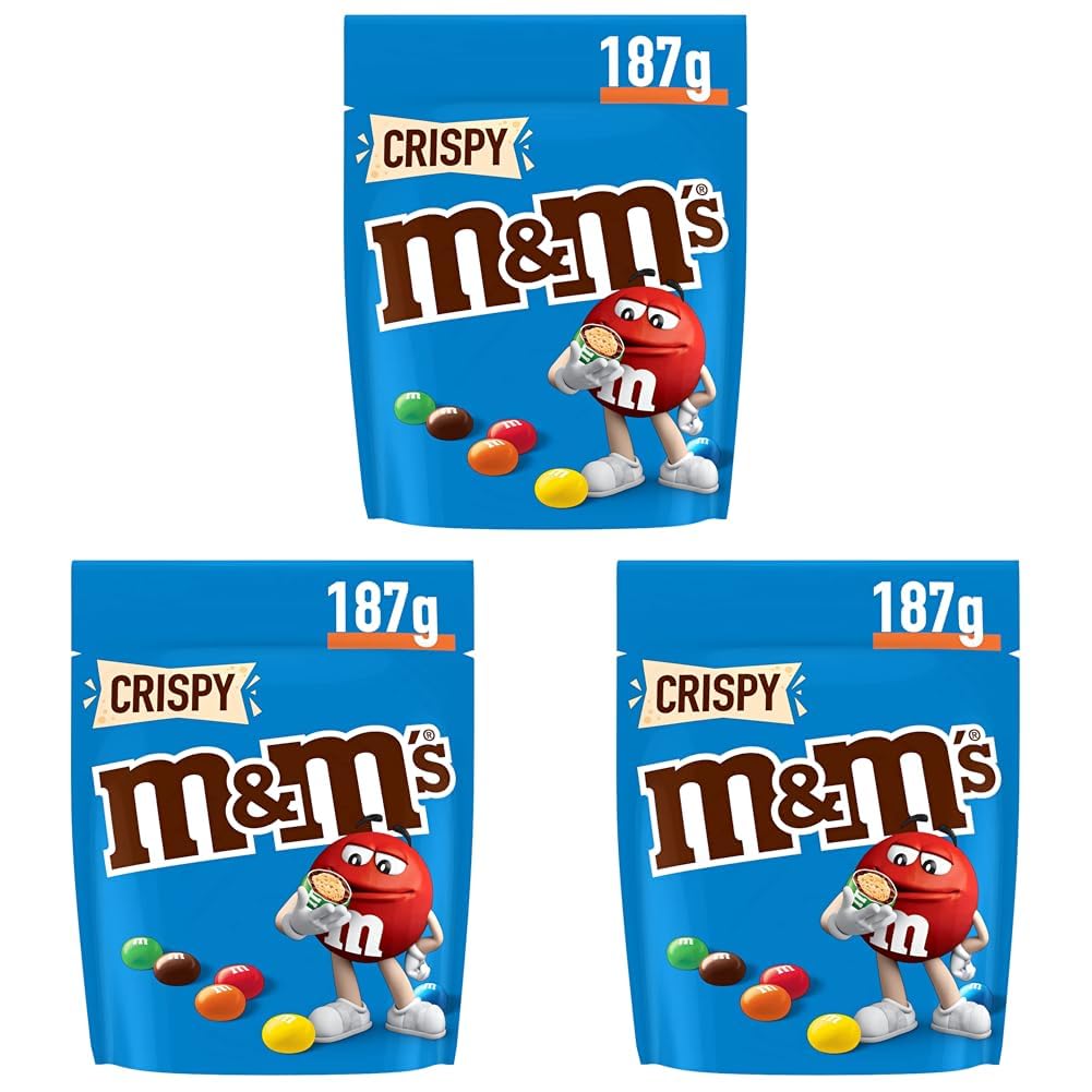 At Mars, we are committed to creating a more modern, inclusive, and sustainable cocoa supply chain for future generations. Through our Responsible Cocoa program, we are determined to bring about real, long-term, and positive change throughout our cocoa supply chain. We focus our efforts on systemic solutions built around three pillars: respect for human rights, environmental protection, and improved incomes for farmers. Since 2023, 100 of the cocoa we purchase for our Mars Wrigley factories in Europe is certified Responsibly Sourced Cocoa. This means we purchase a volume of responsibly sourced cocoa equivalent to the volumes used in our European production.One 187g bag of M M's Crispy. From 2023, M M's chocolate candies are made with 100 responsibly sourced cocoa. This plan aims to combat deforestation, advance respect for human rights, and support cocoa farmers and their communities in the sustainable development of their businesses. Road trip, forest hike, or whitewater rafting: whatever adventure you choose, M M's will bring you joy. The ultimate snack for a movie night, much more exciting than popcorn (unless you add these crispy M M's to the popcorn). M M's are everyone's favorite snack, all year round. They're perfect to enjoy with a movie, for birthday parties, and for sharing with friends. A deliciously crispy rice center covered in mouthwatering milk chocolate and wrapped in a colorful, crispy shell. The information below applies to each unit in the pack. The following information is given to you about your packaging.Chez Mars, nous sommes engagés à créer une chaîne d'approvisionnement en cacao plus moderne, inclusive et durable pour les générations futures. Au travers de notre programme Cacao Responsable, nous sommes déterminés à apporter un changement réel, de long terme et positif tout au long de notre chaîne d'approvisionnement en cacao. Nous concentrons nos efforts sur des solutions systémiques autour de trois piliers : respect des droits de l'Homme, préservation de l'environnement et amélioration des revenus des producteurs. Depuis 2023, 100 du cacao que nous achetons pour nos usines Mars Wrigley en Europe est certifié Cacao d'origine responsable. Cela signifie que nous achetons un volume de cacao d'origine responsable équivalent aux volumes utilisés dans notre production européenne.1 sachet de M M's Crispy de 187g. Dès 2023, les bonbons chocolatés M M's sont fabriqués à partir de cacao provenant à 100 de sources responsables Ce plan vise notamment à lutter contre la déforestation, à faire progresser le respect des droits de l'Homme et à soutenir les producteurs de cacao et leurs communautés dans le développement pérenne de leur activité. Road trip, randonnée en forêt ou rafting en eaux douces : quelle que soit l'aventure que vous choisissez, M M's vous procure du plaisir. L'ultime snack pour une soirée cinéma, bien plus excitant que le popcorn ( A moins que vous n'ajoutiez ces M M's crispy AU popcorn). Les M M's sont le " snack " préféré de tous, tout au long de l'année Ils sont parfaits pour accompagner un film, pour les fêtes d'anniversaire et pour les partager avec des amis. Un cœur de riz délicieusement croustillant nappé d'un chocolat au lait appétissant et enveloppé dans une coque croustillante et colorée. Les informations ci-dessous s'appliquent à chaque unité du pack. Die folgenden Informationen gelten für jede Einheit pro Packung.M M'S CRISPY - Bonbons chocolat au lait et riz soufflé - Sachet de 187g (Lot de 3) 187 g (Lot de 3)