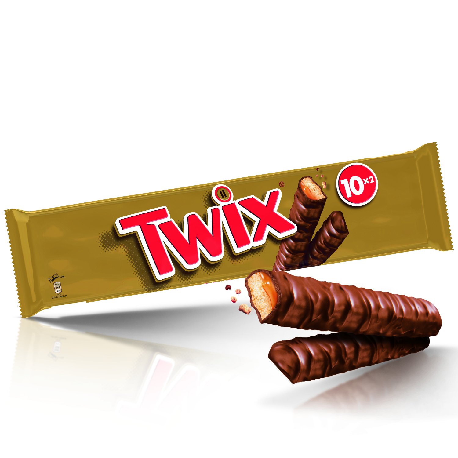 Twix Pack of 10 INGREDIENTS Ingredients: Sugar, glucose syrup, wheat flour (17 ), palm fat, cocoa butter, skimmed milk powder, cocoa mass, milk sugar, butterfat (from milk), sweet whey (from milk), low-fat cocoa, salt, emulsifier (soy lecithin), raising agent (E500), natural vanilla extract (May contain: hazelnut, almond, barley, oat).