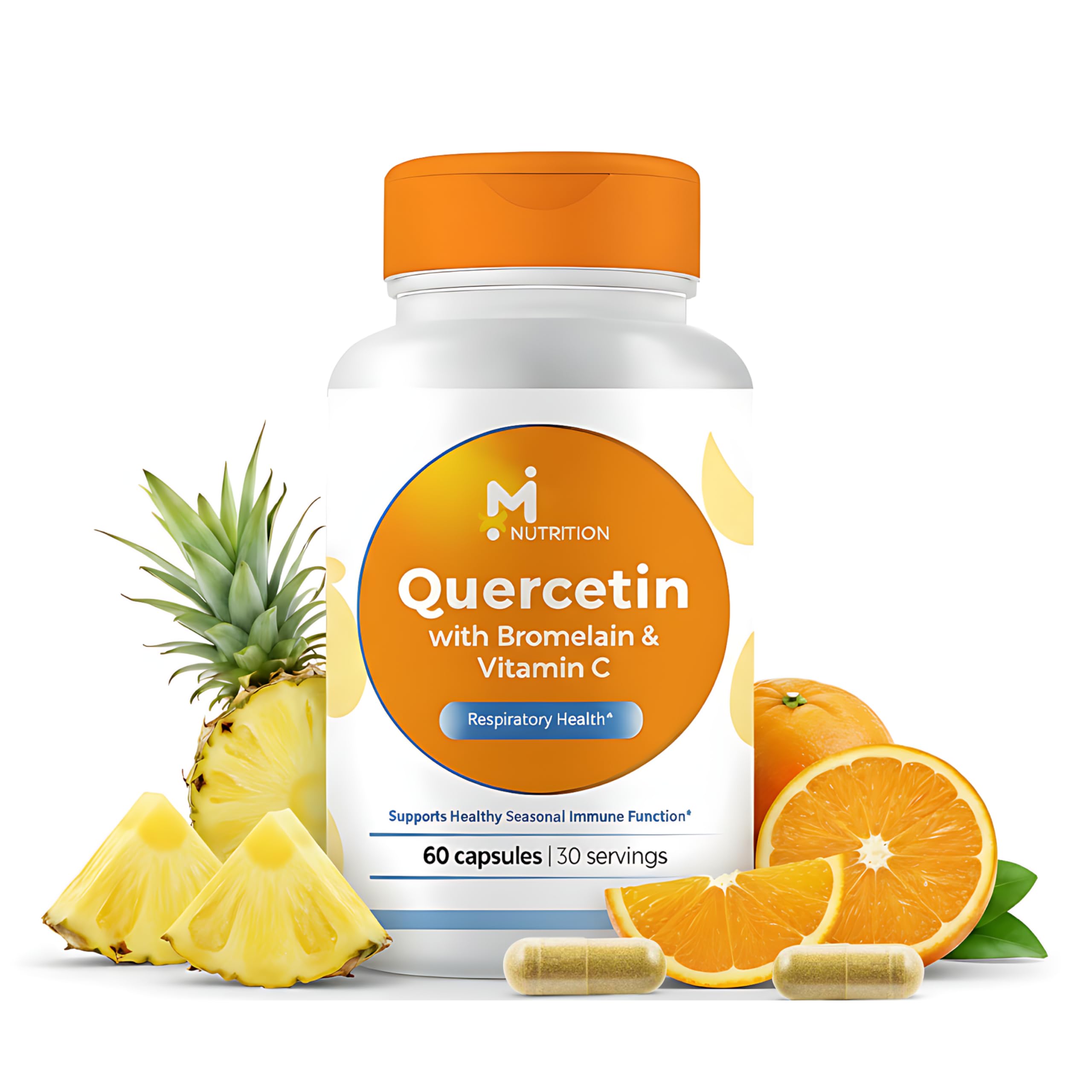 M NUTRITION Quercetin Supplement with Bromelain & Vitamin C 630mg Quercetin Supports Healthy Seasonal Immune & Respiratory Function Antioxidant Support Non-GMO Gluten-Free 60 Capsules