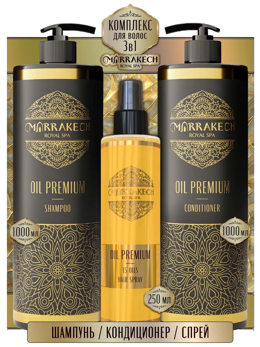 Бальзам ополаскиватель для волос с аргановым маслом ойл премиум – это древние восточные секреты красоты в современном воплощении. Марракеш Роял Спа – это кондиционер и бальзам для волос, поскольку сочетает эффекты двух средств, выполняя восстановление и интенсивное увлажнение поврежденных волос, обеспечивая разглаживание и защиту от спутывания, предотвращая ломкость и сечение. Без сульфатов. Результатом уже первого применения бальзама для волос профессионального 1000 мл станет эстетичный вид локонов с эффектом салонного ухода. Активные вещества в составе кондиционера представлены натуральными ингредиентами, традиционно применявшимися в косметологии Востока.
