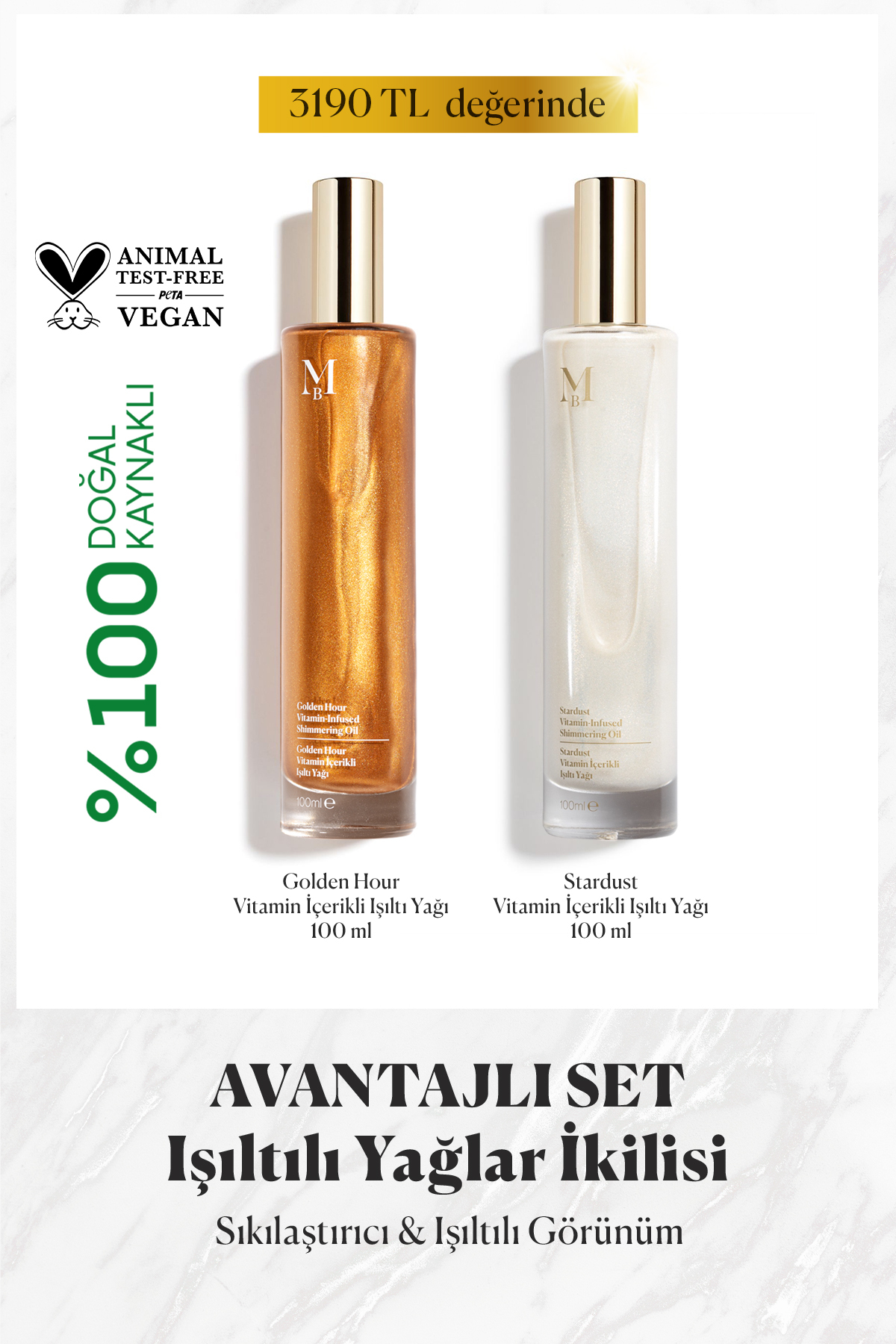 Your skin, your hair, every molecule in your body, and you are actually stardust! Stardust Vitamin-Infused Radiance Oil, inspired by the Super Nova explosion, is formulated for those who are self-confident and show off in its simplest form. It gets its illuminating shine from 0 naturally sourced pigments in its content With the unique harmony of pearl, gold and copper pigments, it adapts to both bronze and fair skin, leaving pearl perfection on your skin. To us, stardust represents beauty, romance, pure goodness. That's why those in whose eyes you see stardust do not see the flaws of others and themselves. Just like wearing Stardust Vitamin Radiance Oil It reflects evenness, brightness and radiance in skin tone. This multi-purpose oil designed with the exotic Sensual Fragrance that won an award in the UK While it reflects a noble glow on your skin, it provides anti-aging care with its antioxidant properties and leaves a silky touch. The formula, enriched with Vitamin E and Vitamin F, cares for the repair of the skin with its strong antioxidant properties and helps reduce post-sun stress. Hibiscus Extract, also known as "Botox Herb", takes your body and hair care to the next level. It helps increase skin elasticity and provides a firmer and younger looking skin. In addition to its magnificent shine, the herbal Squalane, which is added in high amounts to deeply moisturize the skin, is an effective bioactive that softens and smoothes the skin and helps retain moisture in the skin. It protects and supports the skin barrier and has antioxidant properties that reverse and prevent free radical damage. Stardust Vitamin-Infused Radiance Oil, with the seductive scent of the Sensory Massage Oil, which was awarded the fragrance award by Beauty Shortlists Awards in 2019, provides a pleasant experience.
