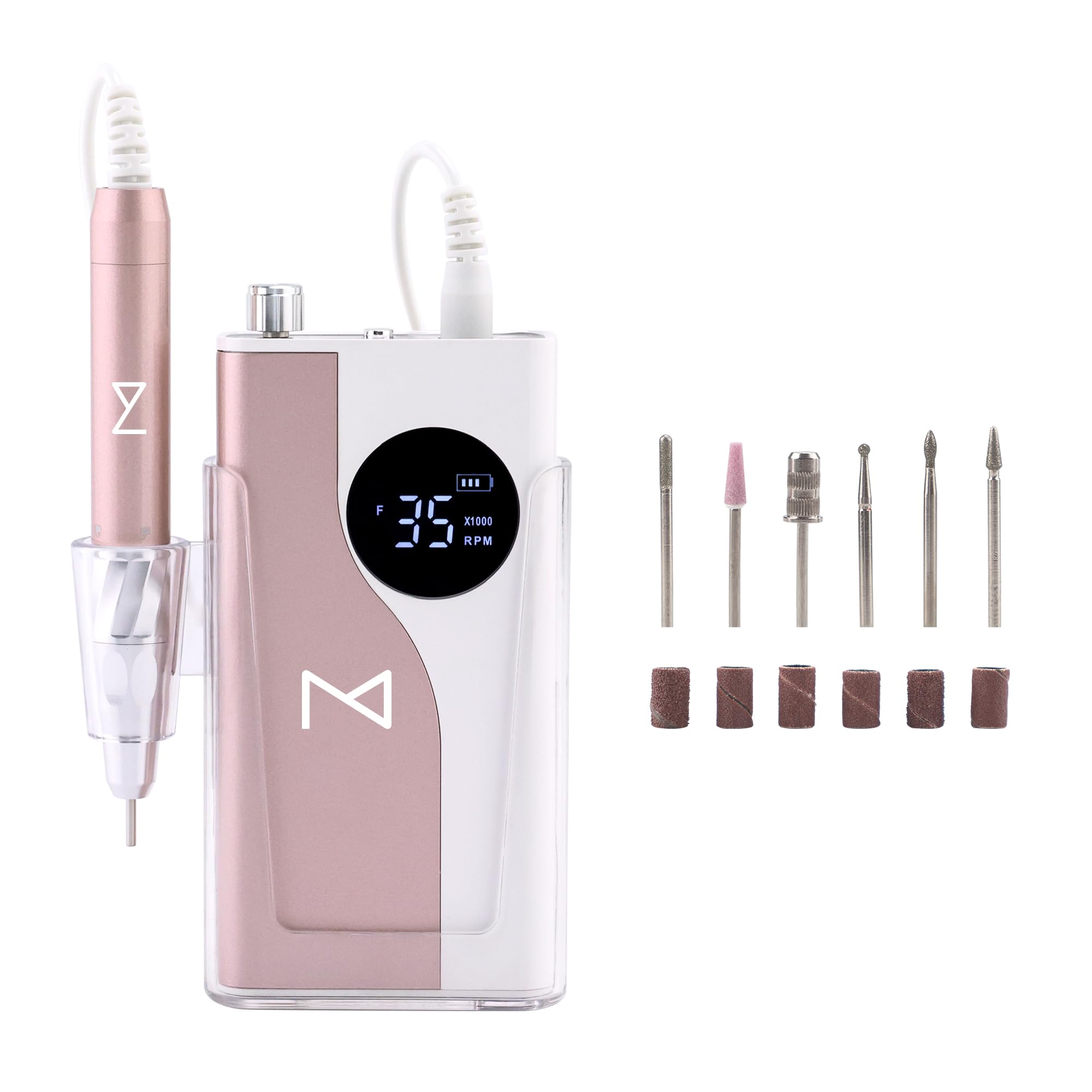 M - Ying Yang Brushless Nail Drill - 35K RPM Wireless Powerhouse 85w Aluminum Alloy Shell Ultra Quiet Operation for Smooth Precision Nail Art (Rose Gold)