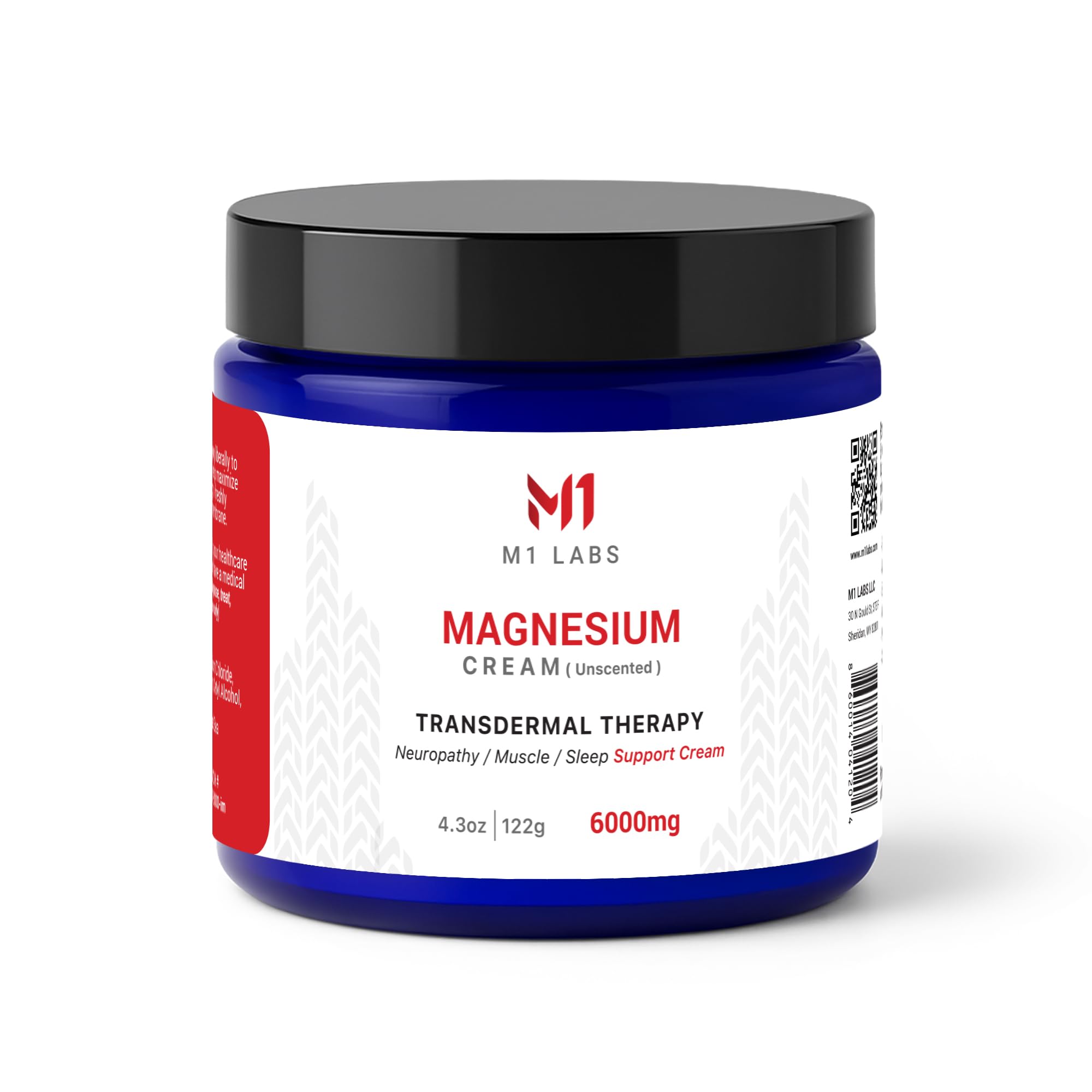 M1 Labs 6000mg Magnesium Topical Cream 4.3 oz Unscented & Fast-Absorbing Magnesium Chloride Cream for Neuropathy Muscle & Sleep Support Paraben-Free Non-GMO for Relaxation Support & Hydration
