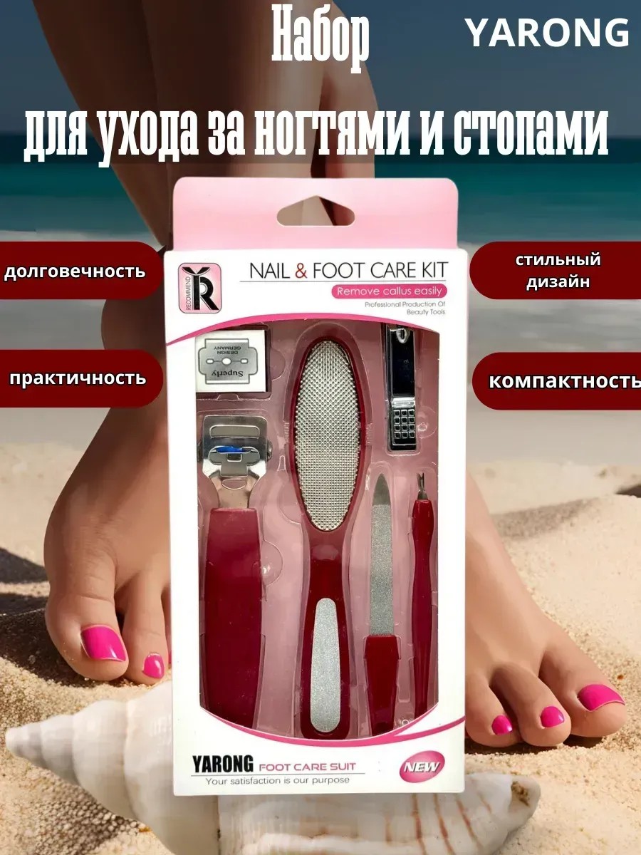 Набор для ухода за ногтями и стопами YARONG предназначен для профессионального и домашнего использования. Он включает в себя различные инструменты для обработки ногтей и кожи ног, а также удаления мозолей и ороговевших участков.