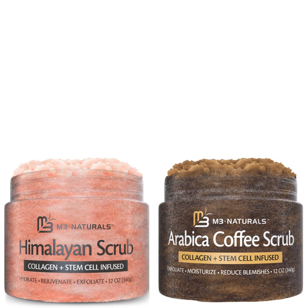 Made in USA with domestic and globally sourced ingredients: We blend carefully selected ingredients to create our Himalayan and Arabica Coffee Scrubs, designed to reveal your smoothest, healthiest skin and leave you with an all-over body glow. M3 Naturals is a brand that contains products that contain natural ingredients and other ingredients. Help Reduce Blemishes: Whether you choose to use our arabica coffee scrub as a face scrub, mask, or body scrub wash our unique blend of ingredients will help reduce the appearance of cellulite, blackheads, eczema, wrinkles, fine lines, dark spots, shaving bumps, stretch marks, spider veins and more! . M3 Naturals Arabica Coffee Scrub: Provides the best exfoliating experience as a body scrub, facial scrub, hand scrub or foot scrub! Moisturizing and rich in antioxidants, our natural coffee scrub will help restore your natural complexion while scrubbing away unwanted toxins and dead skin cells! . Infused with Collagen and Stem Cell: Our Himalayan salt will take your skin regimen to the next level providing a boost in natural collagen production and increg skin cell longevity. A truly powerful combination delivering unmatched anti-aging skin results. . M3 Naturals Himalayan Salt Body Scrub: Provides the best exfoliating experience as a body scrub, facial scrub, hand scrub or foot scrub! Moisturizing and rich in antioxidants, our Himalayan salt with lychee oil will help restore your natural skin while scrubbing away unwanted toxins and dead skin cells! .