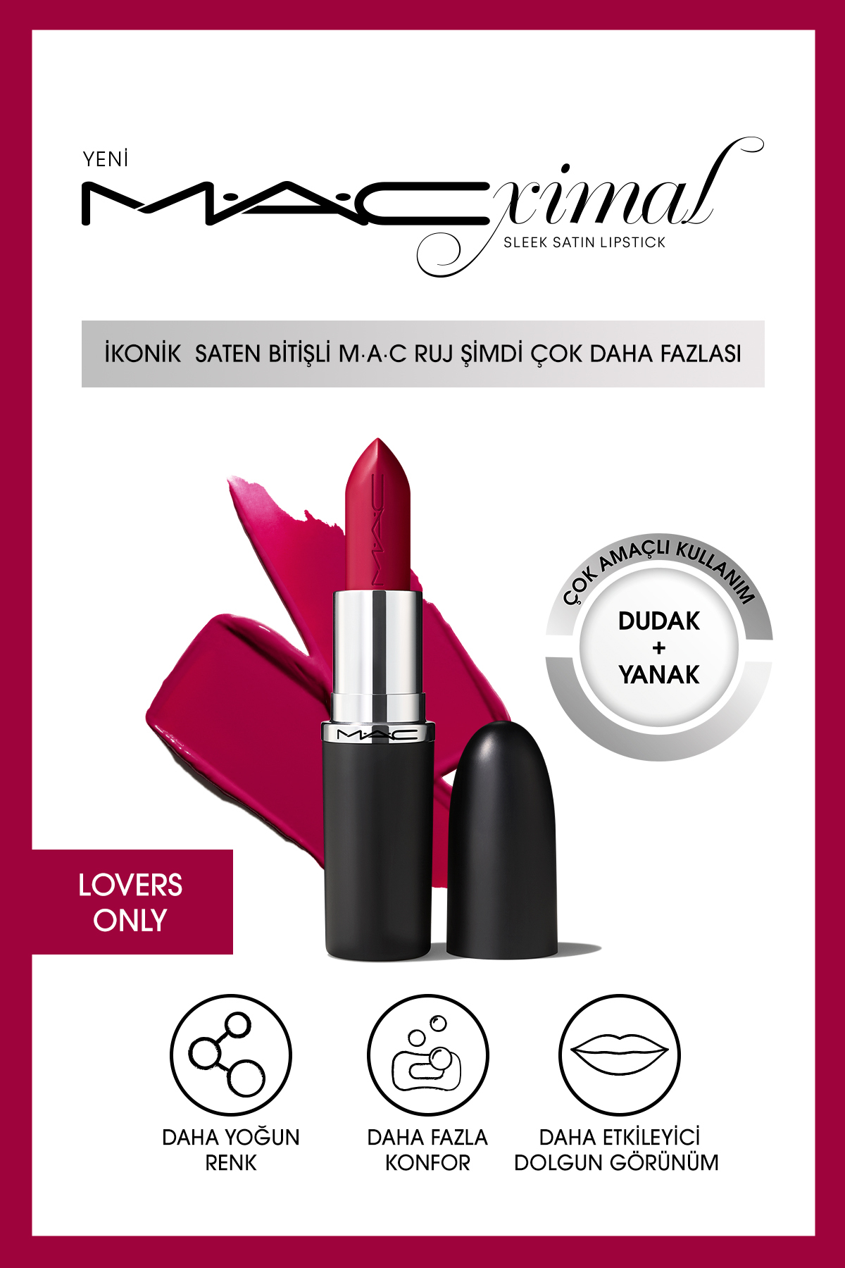 Mac MACximal Sleek Satin Lipstick Iconic Satin Finish Lipstick-LOVERS ONLY 3.5GM