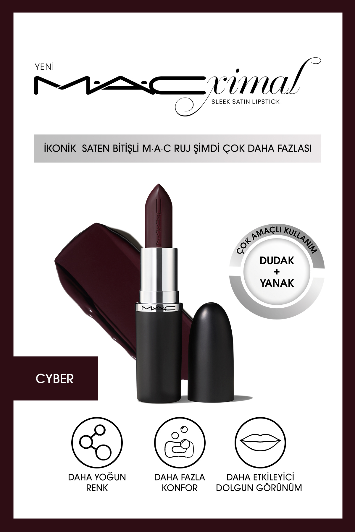 Mac Macximal Sleek Satin Lipstick Ikonik Saten Biti li Ruj-cyber 3.5gm