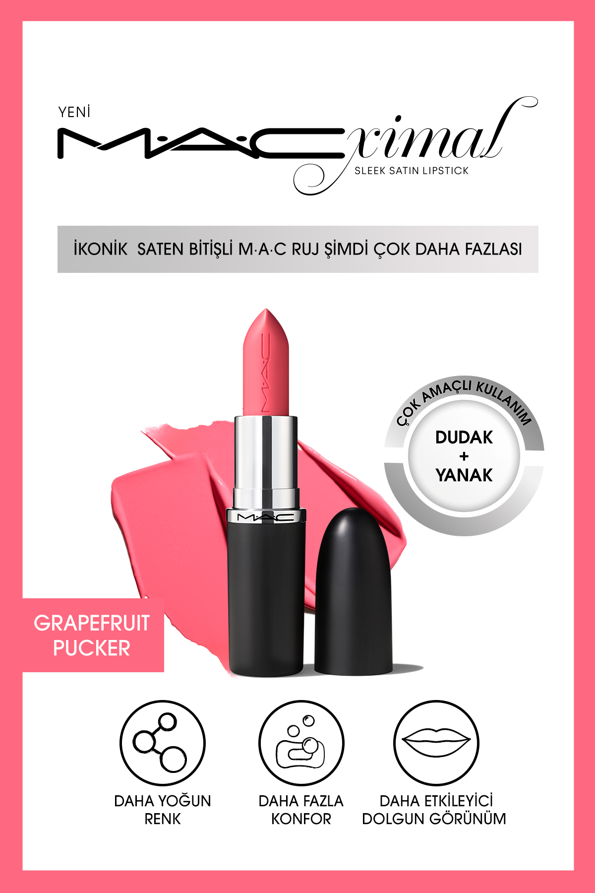 Mac Macximal Sleek Satin Lipstick Ikonik Saten Biti li Ruj-grapefru t Pucker 3.5gm