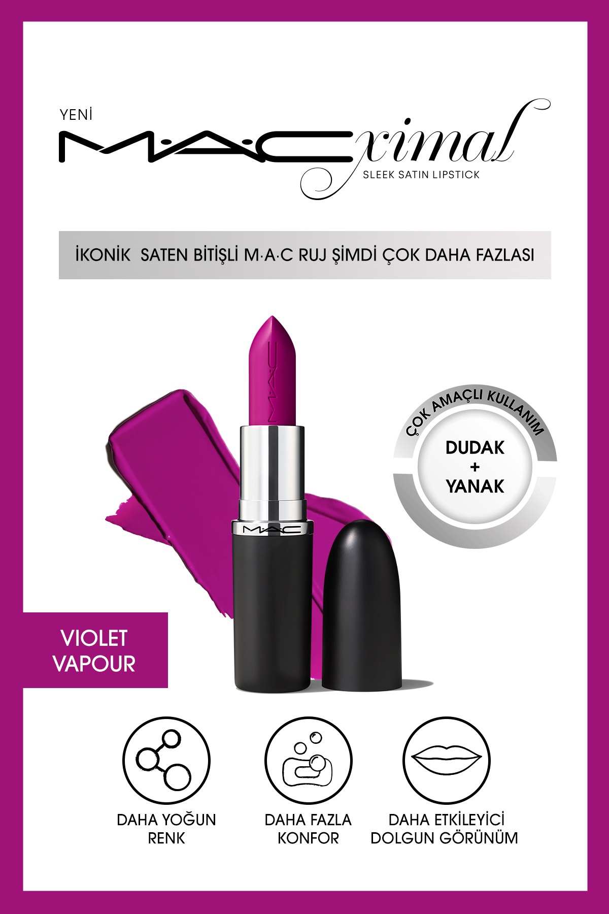 Mac Macximal Sleek Satin Lipstick Ikonik Saten Biti li Ruj-v olet Vapour 3.5gm