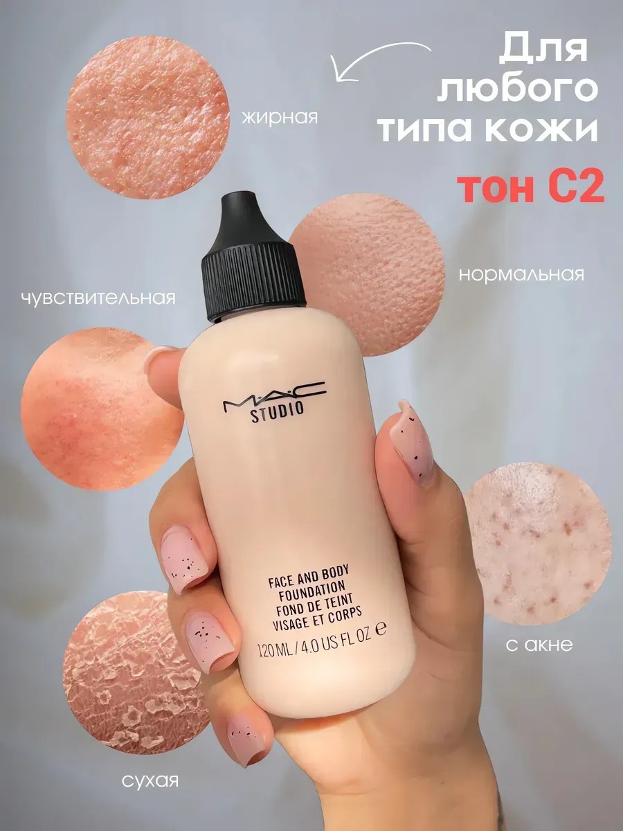 Жидкая матовая тональная основа cоздает естественное атласное покрытие регулируемой плотности от прозрачного до среднего. Легкая, комфортная текстура, устойчивая увлажняющая формула.**ОСНОВНЫЕ СВОЙСТВА И ПРЕИМУЩЕСТВА**Стойкость до 8 часов. Водостойкая. Увлажняет. Не сушит кожу. Подходит для чувствительной кожи. Протестирована дерматологами. Протестирована офтальмологами. Не вызывает появления акне*Отлично увлажняет. С ним ваша кожа всегда будет красиво выглядеть. Ощущение сухости и стянутости не появится. Оттенки Mac Face and Body Foundation: С1. Классический, самый светлый оттенок со слегка розоватым подтоном. Хорошо подойдет абсолютно всем светлокожим девушкам. С2. Здесь немного светло бежевого пигмента. Цвет хорошо подойдет девушкам с теплым, нейтральным оттенком кожи. С3. Светлый кремовый оттенок. Имеет розовато-бежевый подтон. С4. Классический бежевый оттенок с теплым подтоном. Хорошо подойдет на лето девушкам с теплым оттенком кожи. С5. Очень красивый, правильный теплый цвет тонального крема, имеет розовато - оливковый подтон, который хорошо подойдет на лето и загорелой кожи. С6. Темно-бежевый оттенок, подойдет для смуглой и загорелой кожи.Способ применениядля покрытия средней плотности нанесите небольшое количество продукта на лоб, нос, щеки и подбородок. Затем распределите разглаживающими движениями с помощью кисти, спонжа или пальцами, двигаясь от центра к внешнему контуру лица. Для более плотного покрытия нанесите еще один слой.