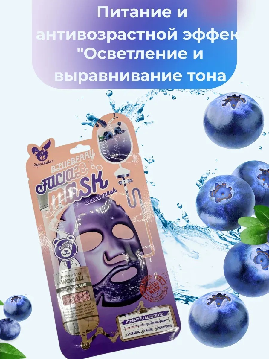Питательная и увлажняющая тканевая маска для лица с экстрактом голубики — идеальное решение для сияющей и здоровой кожи. Благодаря богатому составу, маска помогает осветлить тон лица, уменьшить признаки усталости и придать коже свежесть. Идеально подходит для ухода за уставшей или тусклой кожей, обеспечивает глубокое питание и восстановление. Натуральные компоненты способствуют укреплению защитного барьера кожи, делая ее более упругой и гладкой. Простая в использовании, подходит для всех типов кожи, особенно для тех, кто ищет эффективное средство для домашнего ухода. Обеспечьте своей коже яркость и молодость с помощью этой увлажняющей маски.Омолаживает , тонизирует, успокаивает, восстановливает , с витамином С, коллаген хорошо подтягивает и уменьшает мелкие морщины. Простая в использовании, подходит для всех типов кожи. Маска содержит натуральные компоненты, которые способствуют укреплению и восстановлению кожи, делая ее более упругой и здоровой. Отличный выбор для домашнего ухода за лицом, обеспечивает быстрый эффект и комфортное ощущение свежести.