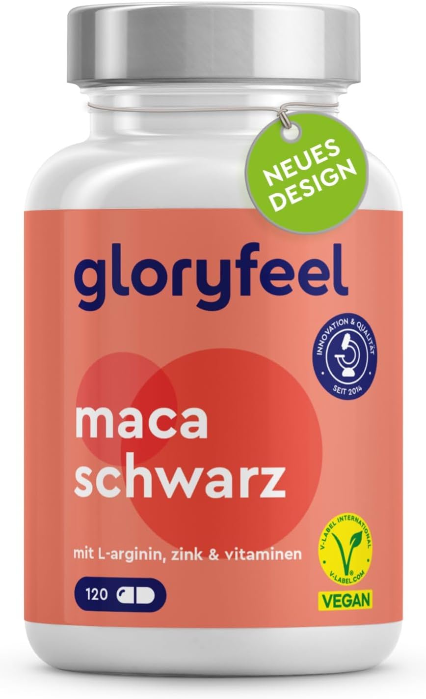 Made in Germany independent of laboratory testing - under the highest quality standards in strictly tested and certified systems, excellent with ISO and how necessary with food law necessary with HACCP certificate in Germany!Every gloryfeel product is subject to continuously accredited independent tests according to DIN EN ISO IEC 17025 certified German test laboratories.Analysis certificate: see product images.100 vegan without additives - our Maca capsules are high -dosed without genetic engineering or animal components.Free from artificial additives such as separating agents, flavors, dyes, stabilizers and fillers.Guaranteed lactose -free, gluten -free without preservatives.Powerful black Maca - Maca is a local Peruvian root from the Andean highlands, whose nutritional value she has made it into a superfood.There are several types, but the most popular and rarest is the black Maca that is attributed to Aphrodisian properties.Powerful formula with zinc B vitamins - zinc has a positive influence on fertility and also protects the cells from oxidative stress.Vitamin B6, B12 and zinc contribute to maintaining a normal function of the immune system.Zinc contributes to the preservation of normal skin, hair, nails, bones and eyesight.Vitamin B12 and B6 contribute to a normal energy metabolism, as well as to reduce fatigue and fatigue. .Extra highly dosed with 27,000 mg macapulver - a capsule contains 1,350 mg black maca extract (20: 1 extract).This corresponds to a total of 27,000 mg pure macapulver per daily dose.Of course, obtained from the black Maca root.In addition, enriched with 450mg L-arginine, 15mg zinc, 4.2 mg vitamin B6 and 7.5µg vitamin B12 for a strong combination.120 Maca capsules are enough for over 1 month.HERGESTELLT IN DEUTSCHLAND UNABHÄNGIG LABORGEPRÜFT - Unter höchsten Qualitätsstandards in streng geprüften und zertifizierten Anlagen, ausgezeichnet mit ISO und wie lebensmittelrechtlich notwendig mit HACCP Zertifikat in Deutschland hergestellt! Jedes GloryFeel-Produkt unterliegt fortlaufenden Tests akkreditierter unabhängiger nach DIN EN ISO IEC 17025 zertifizierten deutschen Prüflabore. Analysezertifikat: Siehe Produktbilder. 100 VEGAN OHNE ZUSÄTZE - Unser Maca Kapseln hochdosiert werden ohne Gentechnik oder tierische Bestandteile hergestellt. Frei von künstliche Zusätzen wie Trennmittel, Aromen, Farbstoffe, Stabilisatoren und Füllstoffe. Garantiert laktosefrei, glutenfrei ohne Konservierungsstoffe. POWERVOLLES SCHWARZES MACA - Maca ist eine einheimische peruanische Wurzel aus dem Andenhochland, deren Nährwert sie zu einem Superfood gemacht hat. Es gibt mehrere Arten, aber die beliebteste und auch seltenste ist das schwarze Maca, der aphrodisische Eigenschaften zugeschrieben werden. LEISTUNGSSTARKE FORMEL MIT ZINK B-VITAMINEN - Zink hat einen positiven Einfluss auf die Fruchtbarkeit und schützt darüber hinaus die Zellen vor oxidativem Stress. Vitamin B6, B12 und Zink tragen zur Erhaltung einer normalen Funktion des Immunsystems bei. Zink trägt zur Erhaltung normaler Haut, Haare, Nägel, Knochen und Sehkraft bei. Vitamin B12 und B6 tragen zu einem normalen Energiestoffwechsel, sowie zur Verringerung von Müdigkeit und Ermüdung bei. . EXTRA HOCHDOSIERT MIT 27.000 MG MACAPULVER - Eine Kapsel enthält 1.350 mg Schwarzer Maca Extrakt (20:1 Extrakt). Das entspricht ganze 27.000mg reines Macapulver pro Tagesdosis. Natürlich gewonnen aus der schwarzen Maca Wurzel. Zusätzlich angereichert mit 450mg L-Arginin, 15mg Zink, 4,2 mg Vitamin B6 und 7,5µg Vitamin B12 für eine wirkungsstarke Kombination. 120 Maca Kapseln reichen für über 1 Monat Vorrat.Maca Schwarz Hochdosiert - 27.000 mg reines Macapulver (20:1 Extrakt) - Mit L-Arginin, Vitamin B6, B12 Zink - 100 vegan, laborgeprüft ohne Zusätze in Deutschland hergestellt