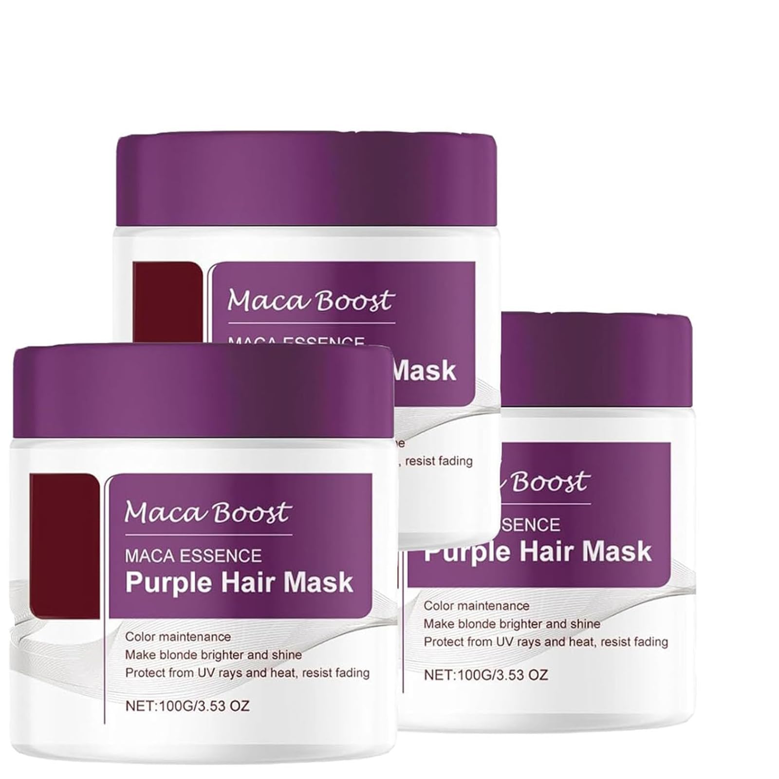Purple Maca Hair Mask, Purple Maca Essence Hair Mask, Collagen Hair Mask Neutralizes Brassy and Yellow Tones for Silver Gray Blonde Hair Specification: Type: Conditioner Net Content: 100ml Shelf Life: 3 Years Package Includes: 1 2 3pcs Purple Hair Mask Note: 1. Due to manual measurement, please allow a difference of 1-2g 1-2cm. 2. Due to different displays and lighting, the picture may not reflect the actual color of the item. Thank you for your understanding[Suitable for All Hair Types]: Whether your hair is curly, straight, or wavy, Maca Essence Purple Hair Mask works wonders for everyone. [Smoothes Frizz]: The purple hair mask is formulated for dry and damaged hair, neutralizes brassiness in blonde tones, tames frizz, and moisturizes your hair. [Nourishing Ingredients]: Infused with nourishing maca essence, this hair mask doesn't just correct color it also moisturizes and strengthens your strands. [Enhances Shine]: This color mask will strengthen and boost your tired, dull, and brassy hair! With just one use, you can leave your hair smooth, supple, and shiny. [Revitalize Your Hair]: Maca Essence Purple Hair Mask is your perfect solution to restore shine and highlight that gorgeous color. Masque capillaire maca violet, masque capillaire maca essence violet, masque capillaire au collagène neutralise les tons cuivrés et jaunes pour les cheveux blonds gris argentés Spécification: Type : Après-shampooing Contenu net : 100 ml Durée de conservation : 3 ans Le forfait comprend : 1 2 3 pièces masque capillaire violet Note: 1. En raison de la mesure manuelle, veuillez permettre une différence de 1 à 2 g 1 à 2 cm. 2. En raison des différents affichages et de l'éclairage, l'image peut ne pas refléter la couleur réelle de l'article. Merci pour votre compréhension[Convient à tous les types de cheveux] : Que vos cheveux soient bouclés, raides ou ondulés, le masque capillaire violet Maca Essence fait des merveilles pour tout le monde. [Lisse les frisottis] : le masque capillaire violet est formulé pour les cheveux secs et abîmés, neutralise les reflets cuivrés dans les tons blonds, il apprivoise les frisottis et hydrate vos cheveux. [Ingrédients nourrissants] : Infusé d'essence de maca nourrissante, ce masque capillaire ne se contente pas de corriger la couleur il hydrate et renforce également vos mèches. [Améliore la brillance] : Ce masque colorant va renforcer et booster vos cheveux fatigués, ternes et cuivrés ! En une seule utilisation, vous pouvez laisser vos cheveux lisses, souples et brillants. [Revitalisez vos cheveux] : le masque capillaire violet Maca Essence est votre solution idéale pour restaurer l'éclat et mettre en valeur cette magnifique couleur.