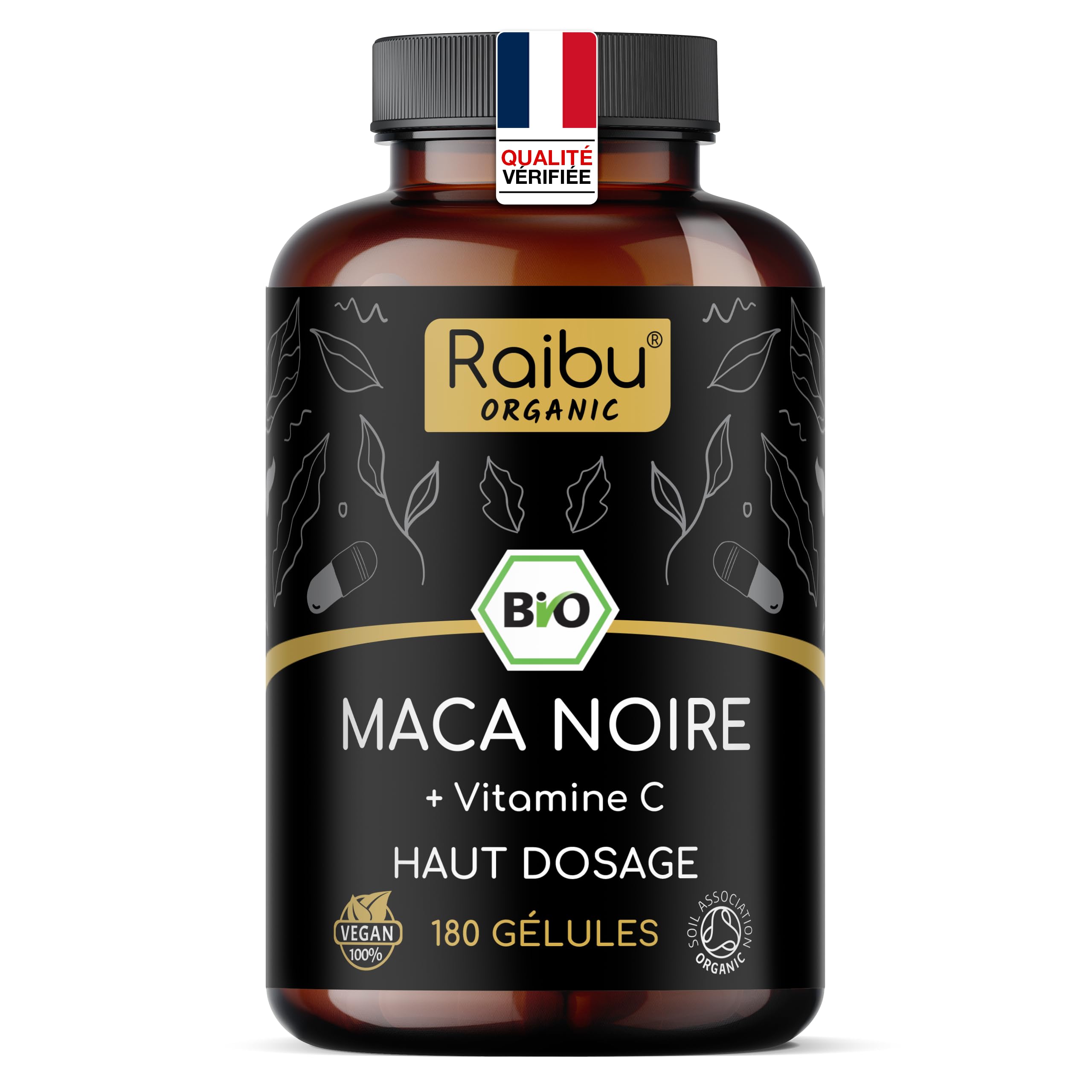 ORGANIC AND ADDITIVE-FREE: Our Maca is 100 organic, grown without pesticides or chemicals. Choosing organic Maca means a purer product, rich in natural nutrients and free from additives. A natural option for balanced and safe support for your body. WE USE WHOLE ROOT POWDER: Our Black Maca is made from only root powder, not extract. This helps retain all the natural nutrients such as essential amino acids, iron, iodine, and minerals, for complete and natural support. ENERGY PACK: Our Maca formula is enriched with natural vitamin C, promoting better nutrient absorption and reducing tiredness. It helps maintain normal psychological function, giving you support to get through the day (EFSA, Regulation (EU) 432 2012). PERU BLACK MACA: Cultivated in the Peruvian Andes for centuries, Black Maca is renowned for its natural benefits. It is valued for its energy support, naturally promoting physical and mental stamina. HIGH NATURAL DOSE: Our daily dose provides 3200 mg of pure organic Maca, combined with natural vitamin C from organic Acerola extract. Ideal for those who wish to support their energy levels naturally . Men and women appreciate it for its natural properties!BIO ET SANS ADDITIFS : Notre Maca est 100 biologique, cultivée sans pesticides ni produits chimiques. Choisir la Maca bio signifie un produit plus pur, riche en nutriments naturels et sans additifs. Une option naturelle pour un soutien équilibré et sûr pour votre corps. NOUS UTILISONS DE LA POUDRE DE RACINE ENTière : Notre Maca noire est fabriquée uniquement à partir de poudre de racine, et non d'extrait. Cela permet de conserver tous les nutriments naturels tels que les acides aminés essentiels, le fer, l'iode et les minéraux, pour un soutien complet et naturel. PAQUET D'ÉNERGIE : Notre formule de Maca est enrichie en vitamine C naturelle, favorisant une meilleure absorption des nutriments et réduisant la fatigue. Elle aide à maintenir un fonctionnement psychologique normal, vous offrant un soutien pour affronter la journée (EFSA, règlement (UE) 432 2012). MACA NOIRE DU PÉROU : Cultivée dans les Andes péruviennes depuis des siècles, la Maca noire est reconnue pour ses bienfaits naturels. Elle est appréciée pour son soutien énergétique, favorisant naturellement la résistance physique et mentale. DOSE NATURELLE ÉLEVÉE : Notre dose quotidienne fournit 3200 mg de Maca bio pure, combinée à de la vitamine C naturelle d'extrait d'Acerola biologique. Idéale pour ceux qui souhaitent soutenir leur niveau d'énergie de manière naturelle . Hommes et femmes l'apprécient pour ses propriétés naturelles!.Maca Noire BIO du Pérou - Haute concentration 12 800 mg Maca Noire du Pérou par Jour (équivalent à 3 200 mg) - Régulateur Hormonal, Détente, Énergie - 180 Gélules - Avec vitamine C - sans OGM