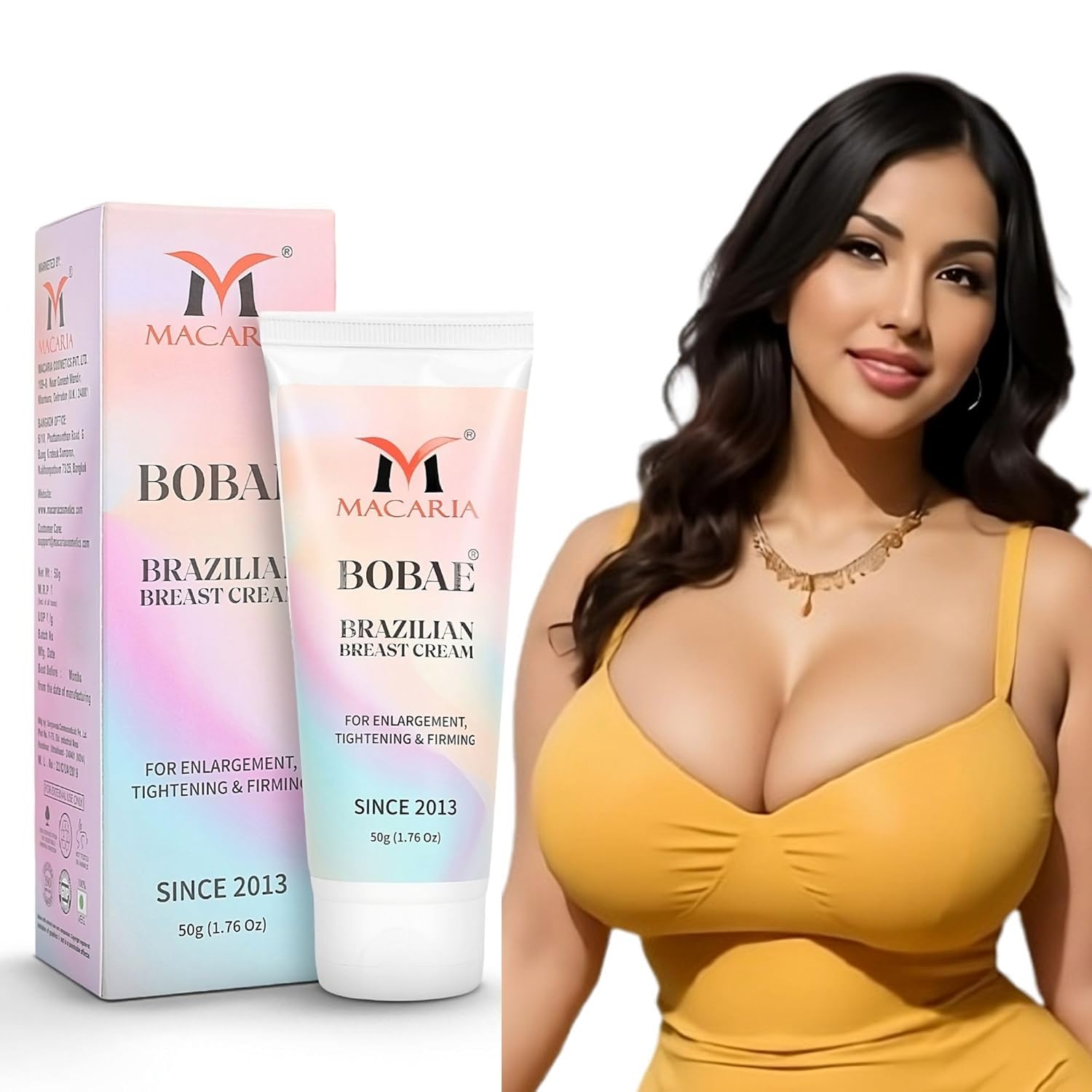 MACARIA Bobae Brazilian Breast Cream | Bust Tightening Shape & Size up Toning Cream Quick Growth Lifting & Firming Breast Enhancement Gel for bigger Boobs for Women enlargement cream for quick growth