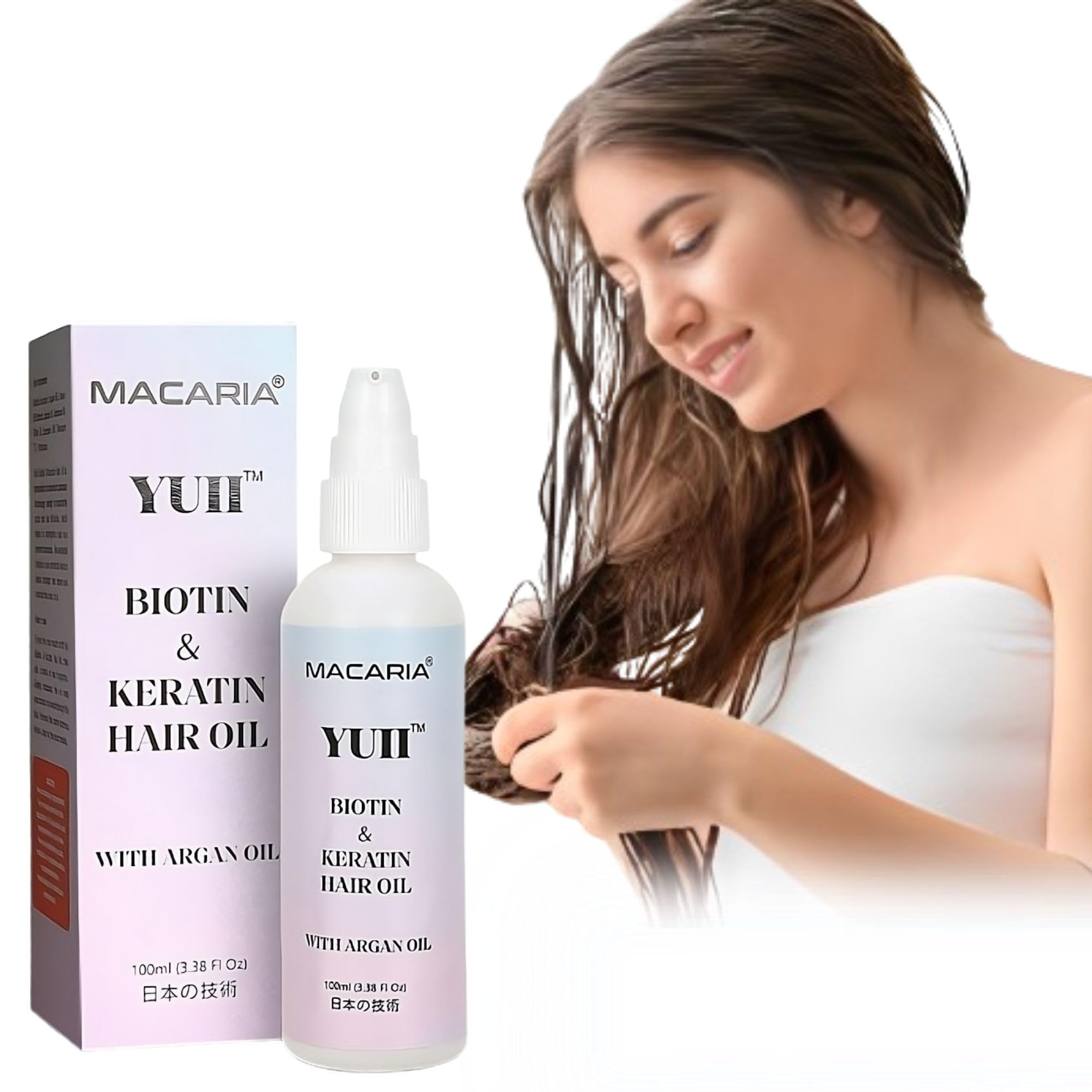 Experience the transformative power of Yuii Biotin Keratin Hair Oil, crafted with precision using Advanced Japanese Technology to revolutionize your hair care routine. Our potent blend of biotin, keratin, and nourishing oils promotes noticeable improvements in hair growth and thickness, delivering visible results you'll love. Strengthen and repair damaged strands, reducing breakage and enhancing hair's natural strength. Bid farewell to frizz as our lightweight formula moisturizes and nourishes, leaving your locks smooth, shiny, and manageable. Suitable for all hair types, our non-greasy oil absorbs quickly, providing rapid results without weighing hair down. Transform your hair care routine with Yuii Biotin Keratin Hair Oil and experience the ultimate in hair rejuvenation. Say hello to more radiant hair today! VEILIGHEIDSWAARSCHUWING Completely SafeVersatile and Lightweight: Suitable for all hair types, our non-greasy formula absorbs quickly, providing rapid results without weighing hair down. Frizz Reduction and Moisture: Say goodbye to frizz as our oil moisturizes and nourishes your hair, leaving it smooth, shiny, and manageable. Strengthens and Repairs: Our formula strengthens and repairs damaged hair, reducing breakage and promoting stronger strands. Hair Growth and Thickness: Experience noticeable improvements in hair growth and thickness with our potent blend of biotin, keratin, and nourishing oils. Advanced Japanese Technology: Yuii Biotin Keratin Hair Oil harnesses the power of Advanced Japanese Technology to deliver exceptional effectiveness and visible results.YUII Biotin Hair Oil With Argan Oil Experience the transformative power of Yuii Biotin Keratin Hair Oil, crafted with precision using Advanced Japanese Technology to revolutionize your hair care routine. Our potent blend of biotin, keratin, and nourishing oils promotes noticeable improvements in hair growth and thickness, delivering visible results you'll love. Strengthen and repair damaged strands, reducing breakage and enhancing hair's natural strength. Bid farewell to frizz as our lightweight formula moisturizes and nourishes, leaving your locks smooth, shiny, and manageable. Suitable for all hair types, our non-greasy oil absorbs quickly, providing rapid results without weighing hair down. Transform your hair care routine with Yuii Biotin Keratin Hair Oil and experience the ultimate in hair rejuvenation. Say hello to more radiant hair today! VEILIGHEIDSWAARSCHUWING Completely SafeVersatile and Lightweight: Suitable for all hair types, our non-greasy formula absorbs quickly, providing rapid results without weighing hair down. Frizz Reduction and Moisture: Say goodbye to frizz as our oil moisturizes and nourishes your hair, leaving it smooth, shiny, and manageable. Strengthens and Repairs: Our formula strengthens and repairs damaged hair, reducing breakage and promoting stronger strands. Hair Growth and Thickness: Experience noticeable improvements in hair growth and thickness with our potent blend of biotin, keratin, and nourishing oils. Advanced Japanese Technology: Yuii Biotin Keratin Hair Oil harnesses the power of Advanced Japanese Technology to deliver exceptional effectiveness and visible results.