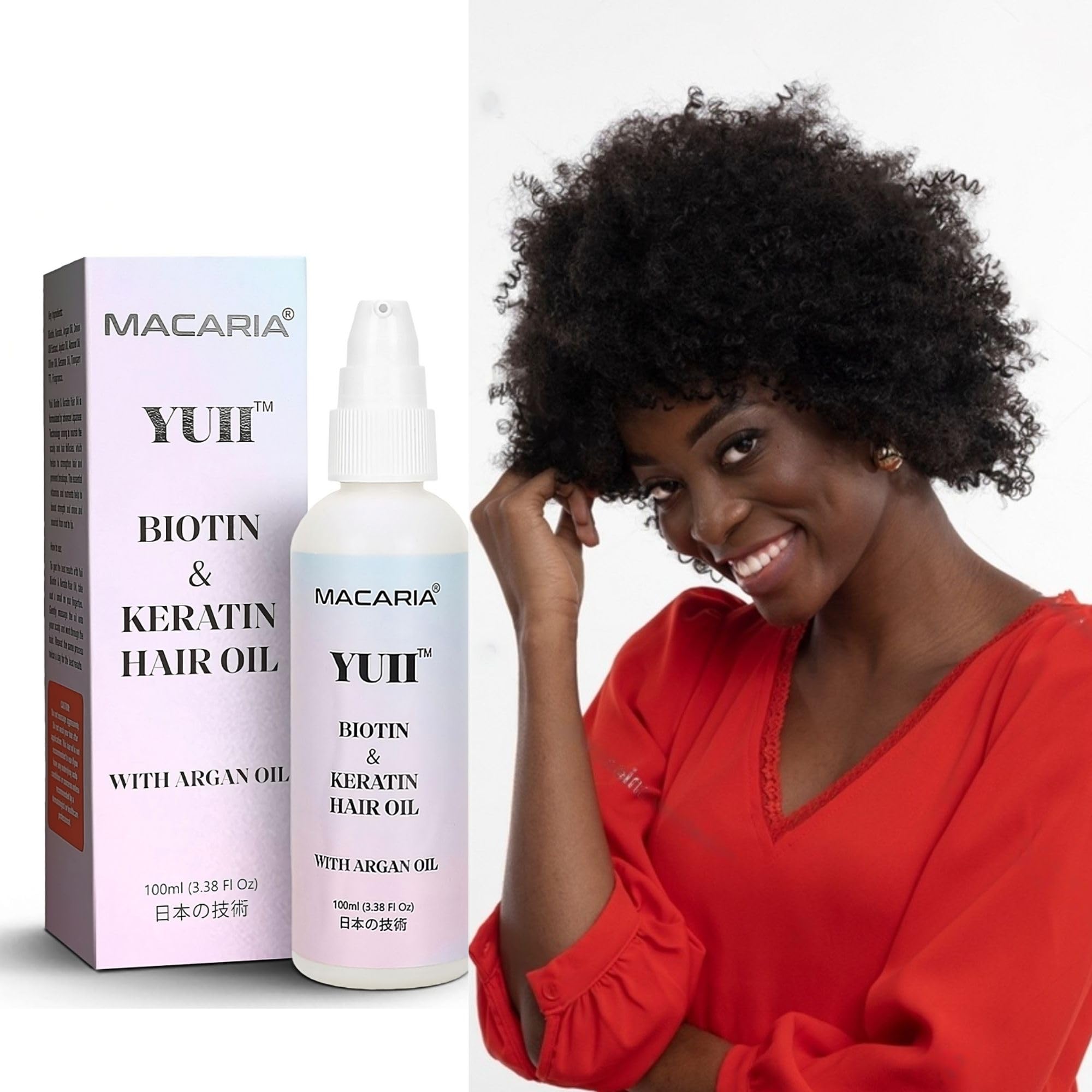 Experience the transformative power of Yuii Biotin Keratin Hair Oil, crafted with precision using Advanced Japanese Technology to revolutionize your hair care routine. Our potent blend of biotin, keratin, and nourishing oils promotes noticeable improvements in hair growth and thickness, delivering visible results you'll love. Strengthen and repair damaged strands, reducing breakage and enhancing hair's natural strength. Bid farewell to frizz as our lightweight formula moisturizes and nourishes, leaving your locks smooth, shiny, and manageable. Suitable for all hair types, our non-greasy oil absorbs quickly, providing rapid results without weighing hair down. Transform your hair care routine with Yuii Biotin Keratin Hair Oil and experience the ultimate in hair rejuvenation. Say hello to more radiant hair today! VEILIGHEIDSWAARSCHUWING Completely SafeVersatile and Lightweight: Suitable for all hair types, our non-greasy formula absorbs quickly, providing rapid results without weighing hair down. Frizz Reduction and Moisture: Say goodbye to frizz as our oil moisturizes and nourishes your hair, leaving it smooth, shiny, and manageable. Strengthens and Repairs: Our formula strengthens and repairs damaged hair, reducing breakage and promoting stronger strands. Hair Growth and Thickness: Experience noticeable improvements in hair growth and thickness with our potent blend of biotin, keratin, and nourishing oils. Advanced Japanese Technology: Yuii Biotin Keratin Hair Oil harnesses the power of Advanced Japanese Technology to deliver exceptional effectiveness and visible results.Yuii Biotin Oil for hair growth infused with Keratin Jojoba Argan hair Strengthening nourishing Experience the transformative power of Yuii Biotin Keratin Hair Oil, crafted with precision using Advanced Japanese Technology to revolutionize your hair care routine. Our potent blend of biotin, keratin, and nourishing oils promotes noticeable improvements in hair growth and thickness, delivering visible results you'll love. Strengthen and repair damaged strands, reducing breakage and enhancing hair's natural strength. Bid farewell to frizz as our lightweight formula moisturizes and nourishes, leaving your locks smooth, shiny, and manageable. Suitable for all hair types, our non-greasy oil absorbs quickly, providing rapid results without weighing hair down. Transform your hair care routine with Yuii Biotin Keratin Hair Oil and experience the ultimate in hair rejuvenation. Say hello to more radiant hair today! VEILIGHEIDSWAARSCHUWING Completely SafeVersatile and Lightweight: Suitable for all hair types, our non-greasy formula absorbs quickly, providing rapid results without weighing hair down. Frizz Reduction and Moisture: Say goodbye to frizz as our oil moisturizes and nourishes your hair, leaving it smooth, shiny, and manageable. Strengthens and Repairs: Our formula strengthens and repairs damaged hair, reducing breakage and promoting stronger strands. Hair Growth and Thickness: Experience noticeable improvements in hair growth and thickness with our potent blend of biotin, keratin, and nourishing oils. Advanced Japanese Technology: Yuii Biotin Keratin Hair Oil harnesses the power of Advanced Japanese Technology to deliver exceptional effectiveness and visible results.