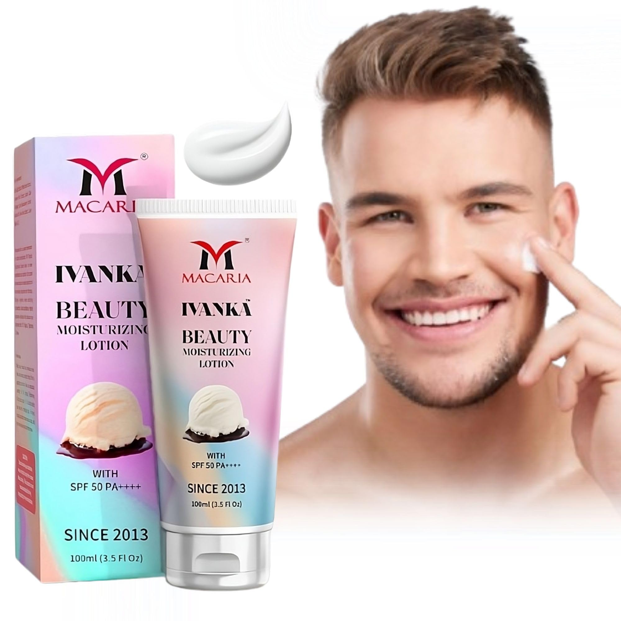 Ivanka Beauty Body Lotion SPF 50 with Hyaluronic Acid Vanilla – Daily Moisturizer for Glowing, Protected Skin Treat your skin to all-day hydration and sun protection with Ivanka Beauty Body Lotion SPF 50, a premium blend of hyaluronic acid, shea butter, vitamin E, and aloe vera. This fast-absorbing, non-greasy body lotion deeply moisturizes dry or rough skin while shielding it from harmful UVA UVB rays.Infused with a soothing vanilla body lotion fragrance, it gives your skin a light scent while delivering benefits. Whether you're indoors or on the go, this moisturizing sunscreen body lotion is ideal for year-round use.