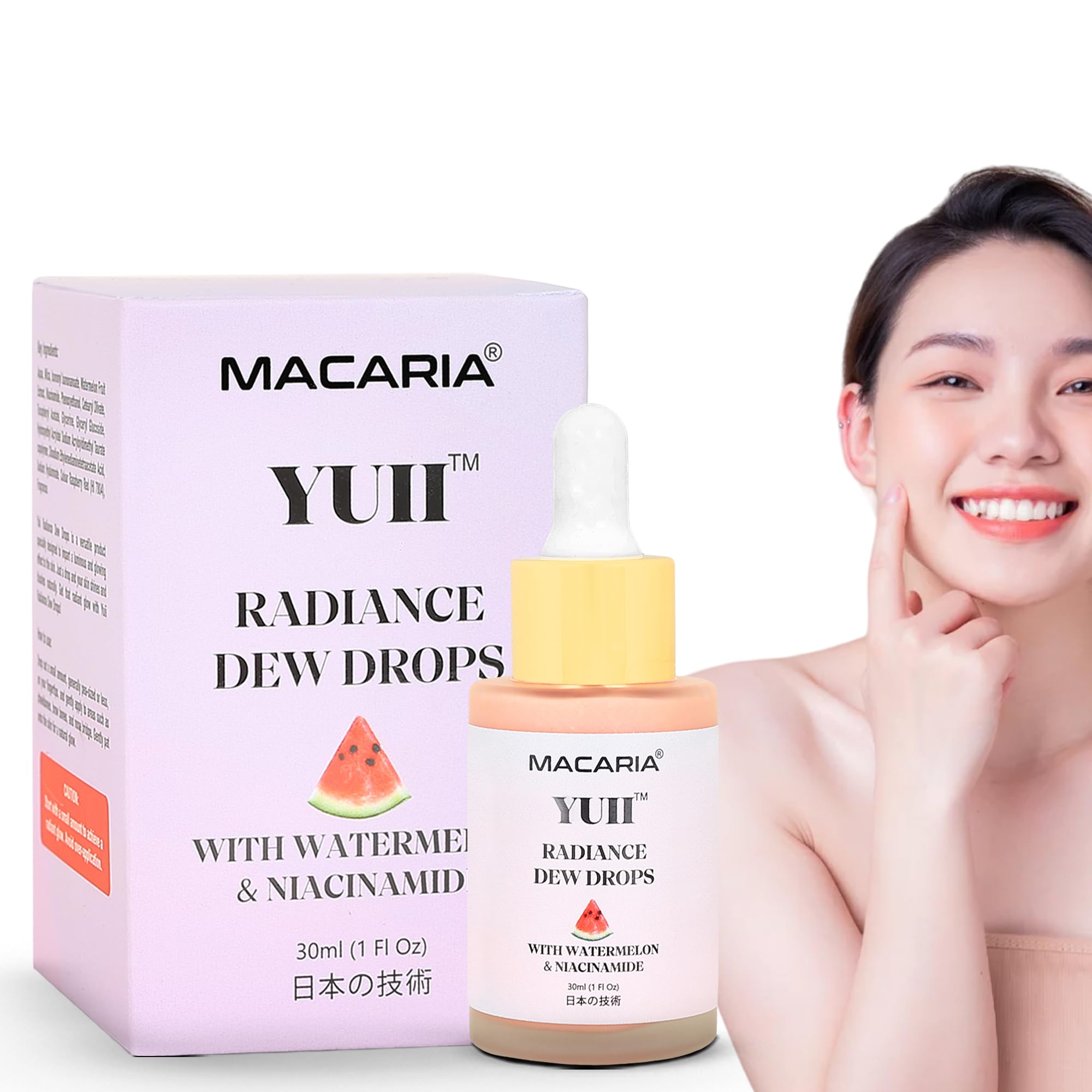 MACARIA YUII Dew Drops Watermelon Glow Niacinamide Highlighting Serum - with Hyaluronic Acid - Brighten Moisturize (Japanese Recipe)