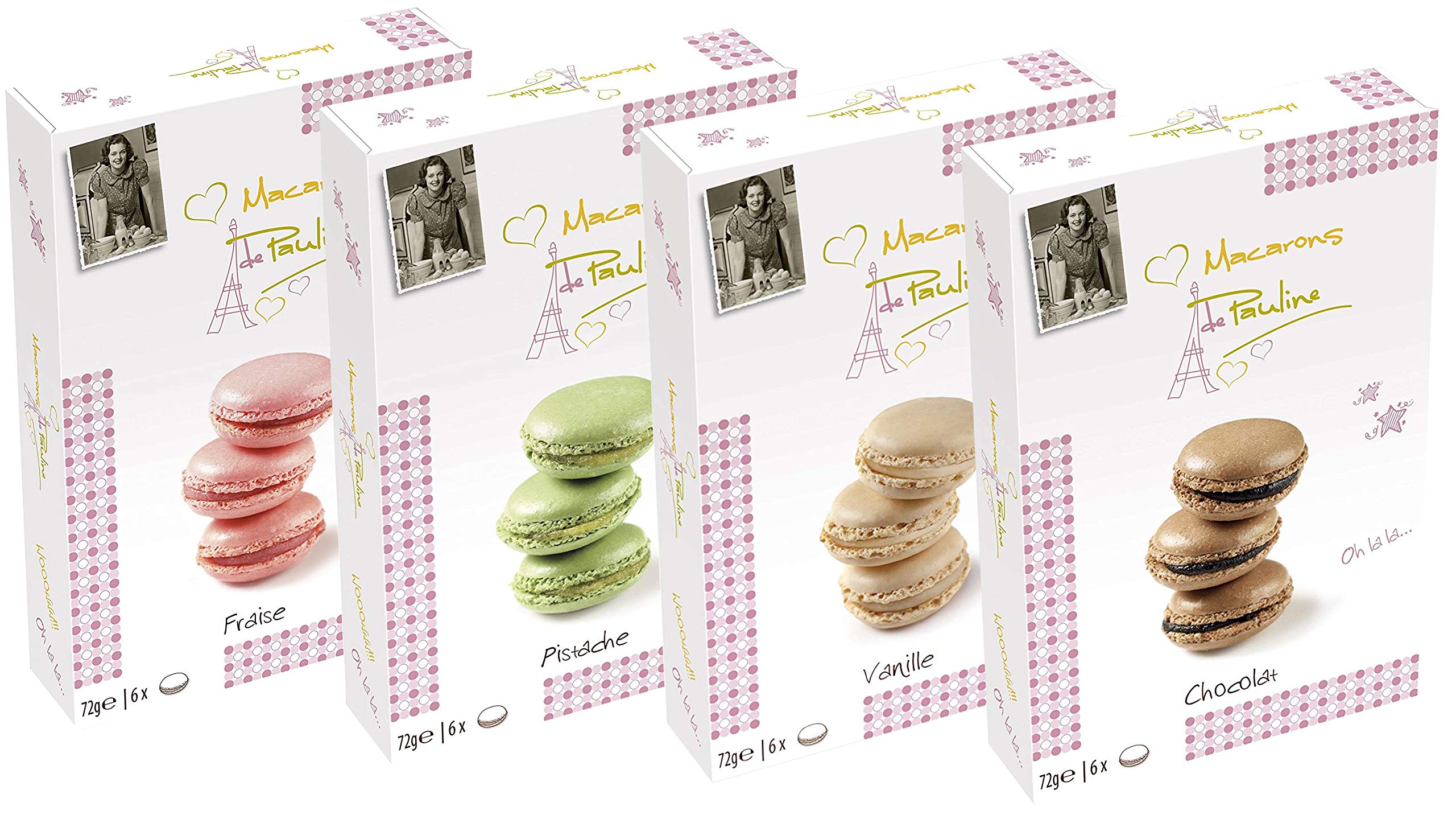 Macarons de Pauline Set of 4 Strawberry Pistachio Vanilla Chocolate 4x72g