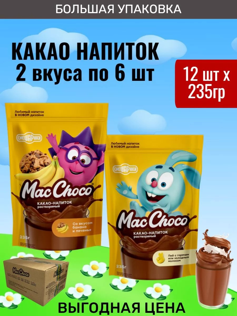 Какао напиток "Смешарики" Классический+Банан-печенье, 12шт
