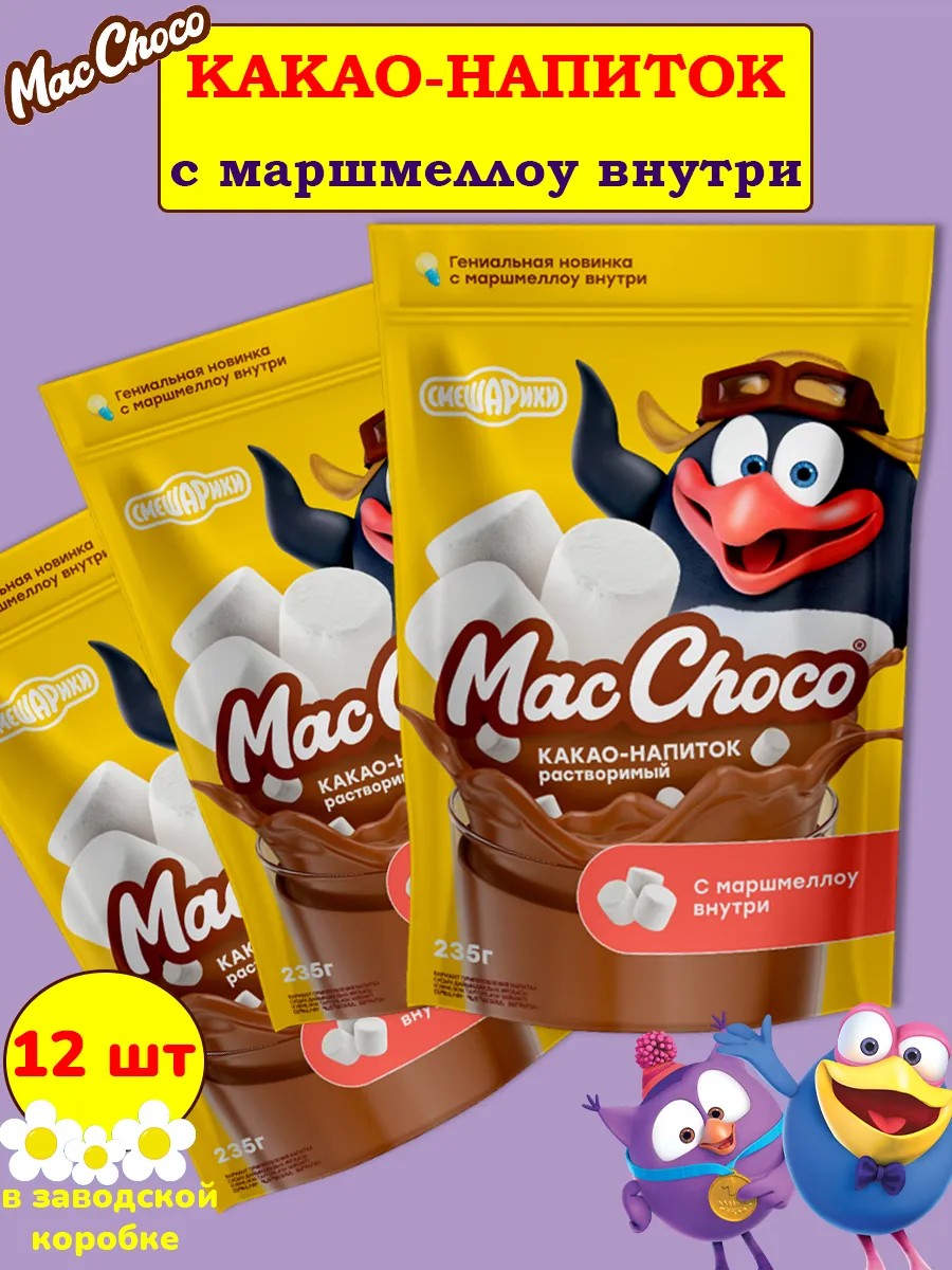 Начинать день детей и взрослых вкусно и полезно — вот задача MacChoco. MacChoco —какао-напиток для всей семьи! Еще больше вкусов от любимого какао-напитка MacChoco! Смешарики Какао Макчоко три вида: какао классический, какао с маршмеллоу внутри и какао со вкусом банана и печенья. Вкусный, полезный и питательный какао-напиток для детей и взрослых!