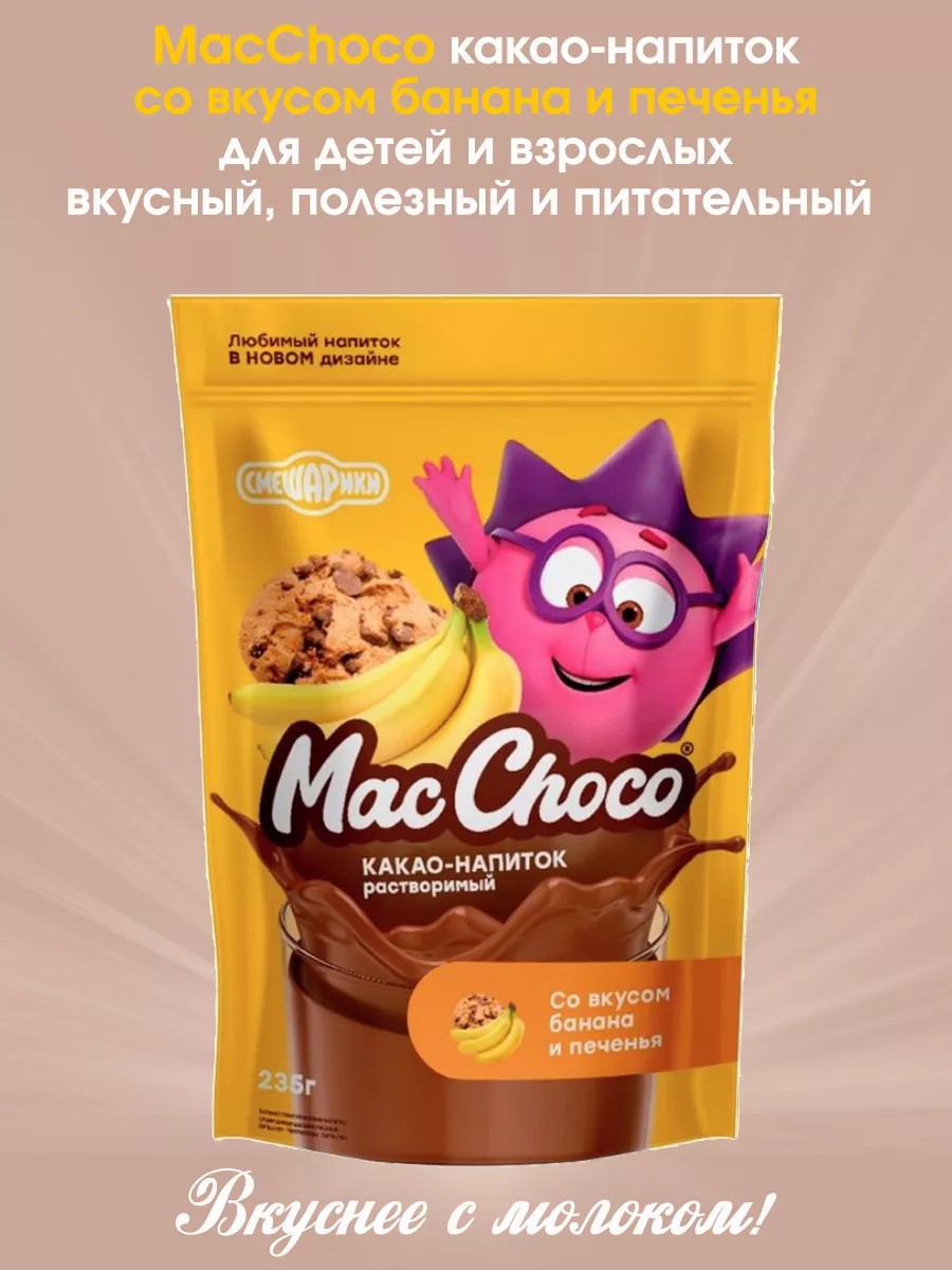 Какао-напиток МакЧоко растворимый 235г вкусный и полезный какао-напиток для детей и взрослых со вкусом банана и печенья! Упакован в картонную коробку.