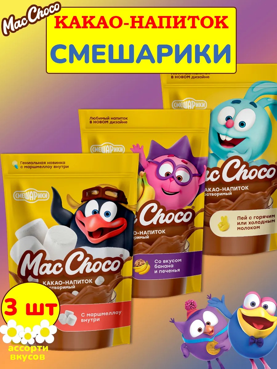 Начинать день детей и взрослых вкусно и полезно — вот задача MacChoco. MacChoco —какао-напиток для всей семьи! Еще больше вкусов от любимого какао-напитка MacChoco! Смешарики Какао Макчоко три вида: какао классический, какао с маршмеллоу внутри и какао со вкусом банана и печенья. Вкусный, полезный и питательный какао-напиток для детей и взрослых!