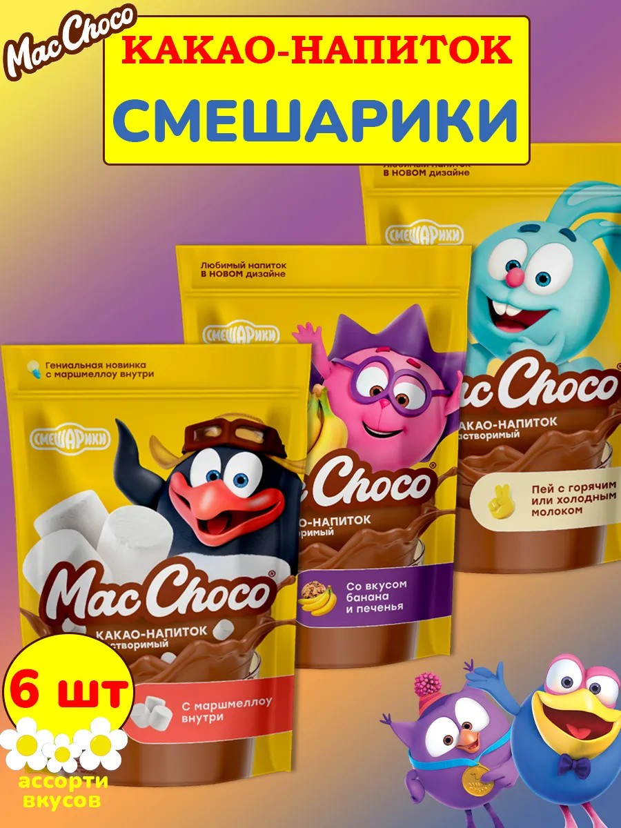 MacChoco is a cocoa drink for the whole family! Even more flavors from the beloved MacChoco cocoa drink! Smeshariki MacChoco Cocoa comes in three flavors: classic cocoa, cocoa with marshmallows inside, and cocoa with banana and cookie flavors. A delicious, healthy, and nutritious cocoa drink for children and adults!