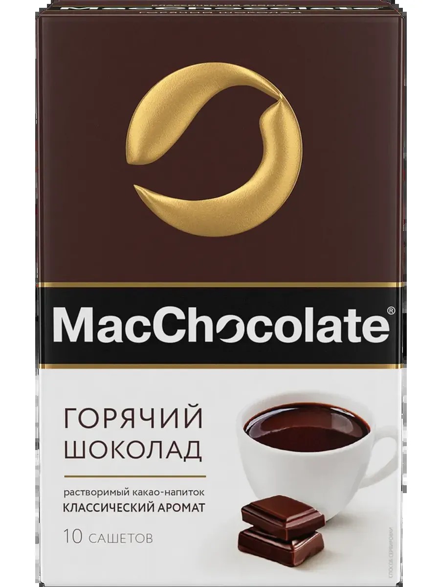 Какао-напиток Горячий шоколад MACCHOCOLATE Классический ‒ это растворимый горячий шоколад высокого качества, который содержит натуральный какао-порошок, приготовлен по особому рецепту из лучших сортов какао с добавлением сливок и сахара. Представьте себе идеальный горячий шоколад. Первое, что приходит в голову – это манящий аромат и бархатистый, насыщенный шоколадный вкус MACCHOCOLATE.