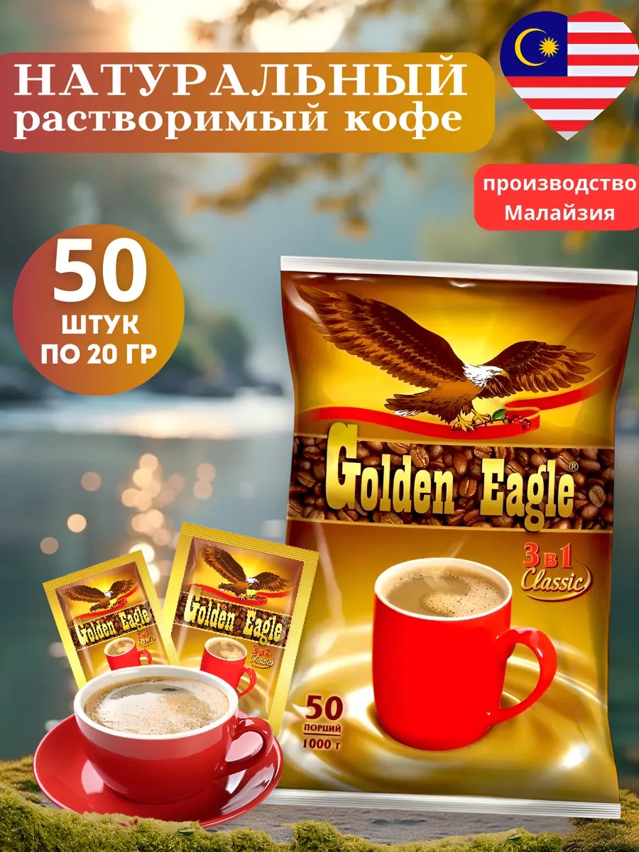 Golden Eagle Classic 3в1 в пакетиках – это восхитительное сочетание насыщенного вкуса и яркого аромата. Изготовленный из отборных кофейных зерен, обжаренных по специальной технологии, этот кофе растворимый выделяется мягким вкусом и богатым благоуханием.