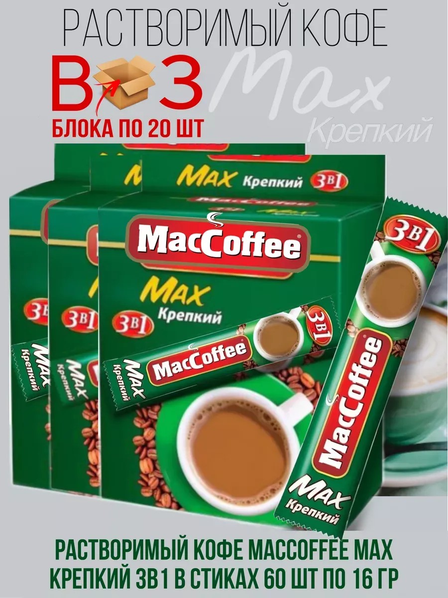 MACCOFFEE Напиток кофейный МасСoffee Max 3в1 Крепкий, 60 шт по 16 г