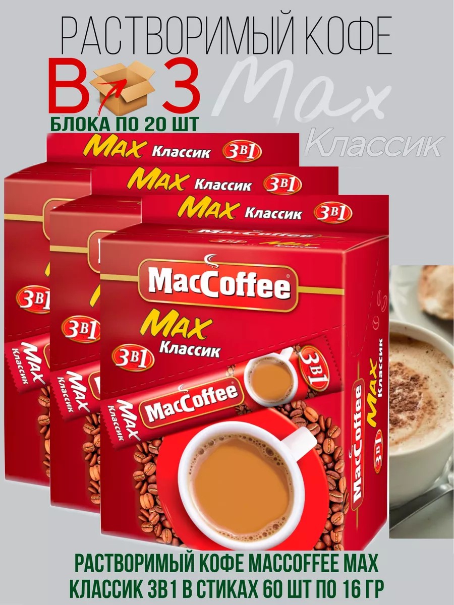 MacCoffee Напиток кофейный МасСoffee Max 3в1 Классик, 60 шт по 16 г