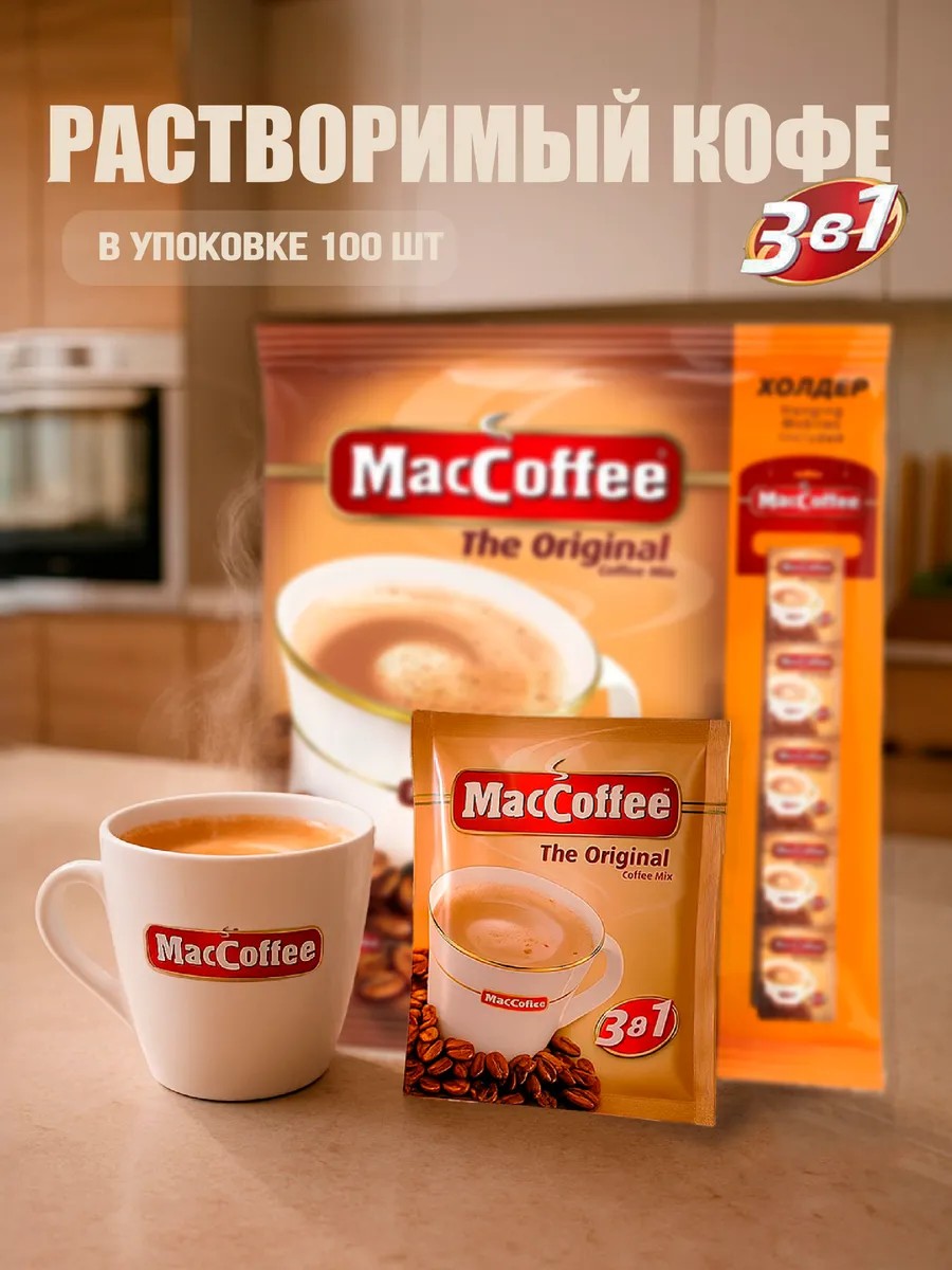 MacCoffee 3 в 1 Original легенда среди растворимых напитков. Вкус, с которого для многих началась любовь к кофе. Оптимальное сочетание насыщенного растворимого кофе, нежных сливок и сбалансированного сахара делает каждый глоток приятным, мягким и бодрящим. Кофе в стиках обеспечивает максимальный комфорт: быстро, удобно, без лишнего мусора и весов. Просто открыть стик, залить кипятком и наслаждаться. Упаковка из 100 порций это целый месяц утреннего удовольствия. Идеален для дома, офиса, командировки или дачи. MacCoffee Original ценится за универсальность и стабильный вкус не подведёт. С ним легко начать утро, взбодриться днём или согреться вечером. Выбор тех, кто ценит практичность, скорость и вкус. Кофе, который всегда рядом. MacCoffee 3 в 1 Original напиток, проверенный временем. Закажи сейчас и получи удовольствие уже завтра. Лучший выбор в категории кофе 3 в 1. Растворимый кофе MacCoffee просто, вкусно и эффективно. Не упусти возможность сделать каждое утро приятным!