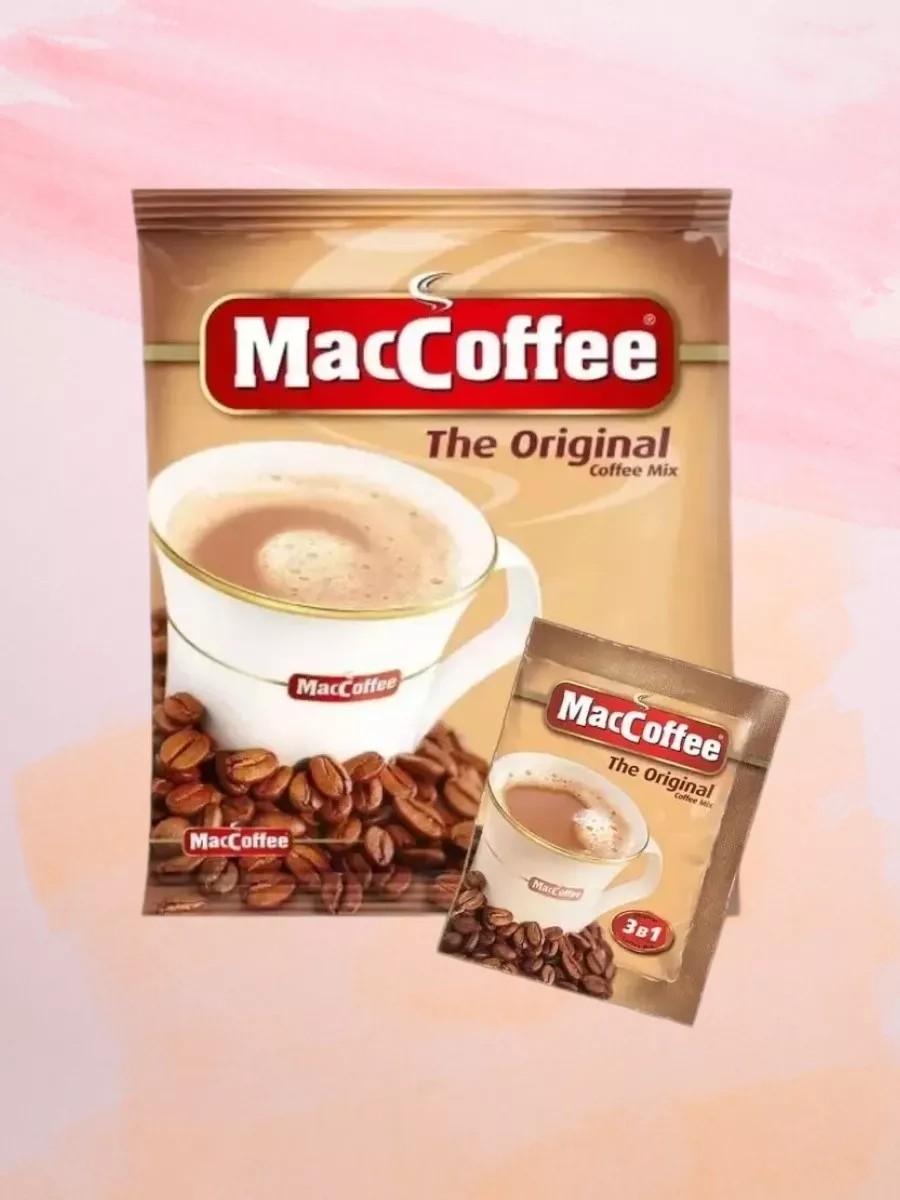 MacCoffee The Original 3-in-1 Instant Coffee is a blend of select coffee beans, non-dairy creamer, and sugar. This combination of MacCoffee 3-in-1 instant coffee delivers a vibrant, unique flavor and rich aroma. It's made from three carefully blended ingredients: premium Brazilian coffee, Dutch cream, and Malaysian sugar. The Original 3-in-1 single-serve instant coffee is easy to use: empty the contents of the packet into a cup, add hot water, and stir. Energy, vitality, and a positive mood are guaranteed for the entire day!