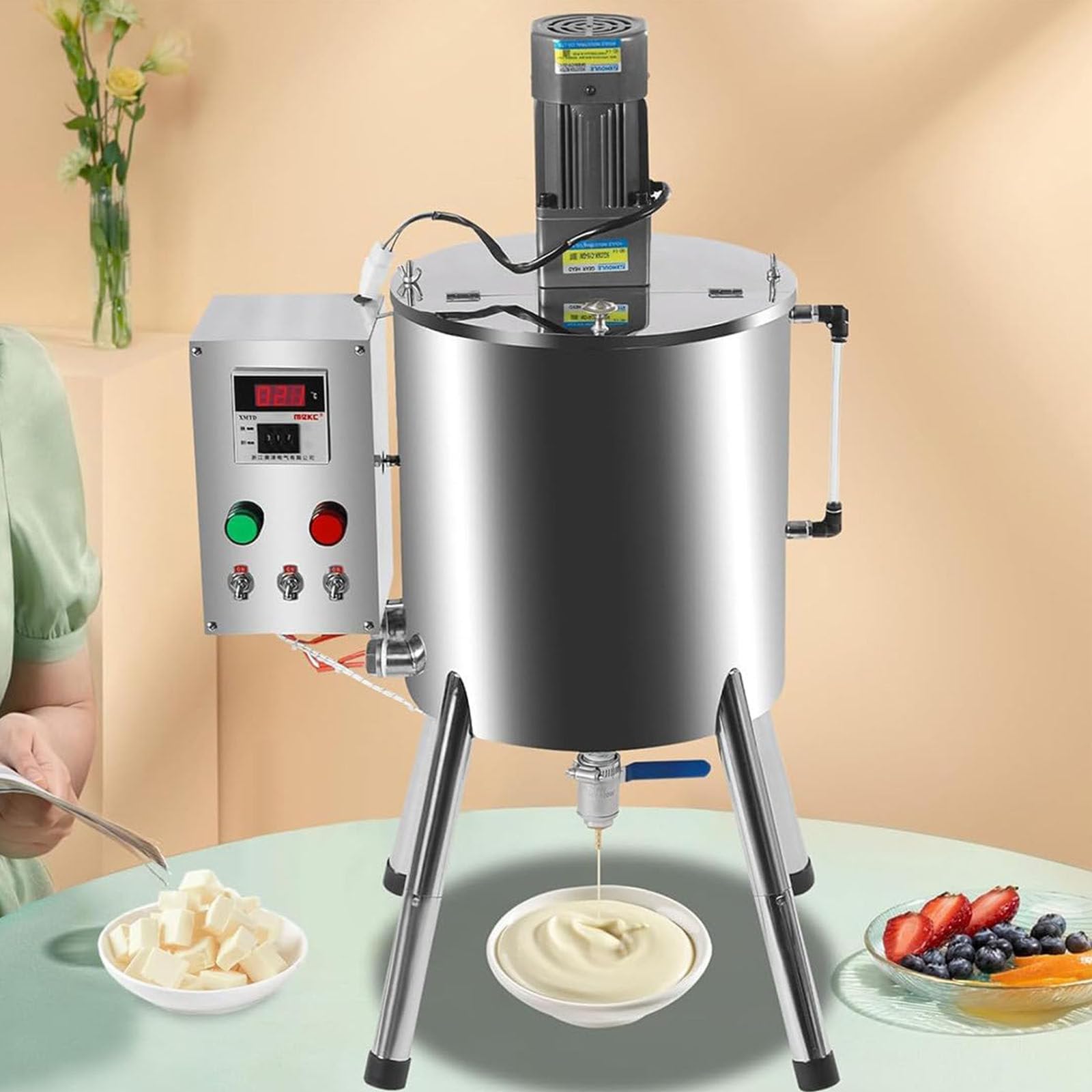 Welcome to my shop! I look forward to serving you. Professional lipstick filling machine with intelligent constant temperature, high speed, waterproof and anti-sulfurization. Say goodbye to bottlenecks! 30-40 pieces per minute, precise temperature control (90 C-300 C), food-grade 304 stainless steel. Specifications: Capacity: 15 L, Gross weight: 22 kg, Net weight: 20 kg, Packaging dimensions: 55 x 52 cm, Product dimensions: 53 x 39 x 70 cm, Capacity: 25 x 46 x 62 x 59 x 79 cm, Application: Liquid, paste, Material: 304, copper, Heating power: 1600 W 2000 W, Stirring power: 60 W 120 W, Maximum motor speed: 36 rpm, Outlet orifice heating: 120 W 150 W, Accuracy: 1 (specific accuracy must be checked manually), Adjustable temperature: 0-300 C, Assembly required: Yes, Method: Manual, Power supply: Wired, Speed: 20-45 bottles minute (depending on user skill), Process: Automatic argon arc welding, polishing, Body wall thickness: 2 mm, Contents: 1 filler, 1 agitator Columns, support, 1 user manual in English, all accessories. Notes: 1. The water inlet also serves as a steam vent please do not obstruct it. 2. Please clean the roller before use. 3. For any questions, please feel free to contact us. We will respond as soon as possible (within 24 hours). Happy shopping.[MIXING. [PRECISION HEATING AT CONSTANT TEMPERATURE] Industrial-grade heating tube combined with a water oil heat transfer fluid, with a precise temperature control range of 90 C to 300 C (water layer C oil layer C), to meet the melting and filling needs of various materials such as wax, cream, liquids, etc. Internal insulation makes the machine safe and pleasant to the touch.Bienvenue dans ma boutique, au plaisir de vous servir Machine remplissage rouge à lèvres professionnelle, température constante intelligente, grande vitesse, étanche et anti-sulfuration. Dites adieu aux goulots d'étranglement ! 30 40 pièces par minute, contrôle précis la (90 C 300 C), acier inoxydable 304 qualité alimentaire Spécifications : Capacité : 15 L Poids brut 22 kg Poids net 20 kg Dimensions l'emballage 55 x 52 cm Dimensions du produit 53 39 70 cm Capacité 25 46 62 59 79 cm Application liquide, pâte Matériau 304, cuivre Puissance chauffe 1600 W 2000 W Puissance d'agitation 60 W 120 W Vitesse maximale moteur 36 tr min Chauffage l'orifice sortie 120 W 150 W Précision 1 (la précision spécifique doit être contrôlée manuellement) Température réglable 0-300 C Assemblage requis Oui Méthode manuel Alimentation filaire Vitesse 20-45 bouteilles minute (selon maîtrise l'utilisateur) Procédé soudage automatique l'arc sous argon, polissage Épaisseur paroi corps 2 mm Contenu : 1 remplisseuse Machine 1 agitateur 4 colonnes support 1 manuel d'utilisation en anglais Tous les accessoires Remarques : 1. L'arrivée d'eau sert également évacuer vapeur veuillez ne pas l'obstruer. 2. Veuillez nettoyer le rouleau avant utilisation. 3. Pour toute question, n'hésitez nous contacter. Nous répondrons plus brefs délais (24 heures). Bon shopping.MÉLANGE. CHAUFFAGE PRÉCIS À TEMPÉRATURE CONSTANTE Tube chauffant de qualité industrielle associé à un fluide caloporteur eau huile, avec une plage contrôle température précise 90 C 300 (couche d'eau C couche d'huile C), pour répondre aux besoins fusion et remplissage divers matériaux tels que la cire, crème, les liquides, etc. L'isolation interne rend machine sûre agréable au toucher.Machine De Remplissage Rouges à Lèvres, par Chauffage Et Mélange, Bougies, Gloss Lèvres Pâte Liquide,30L